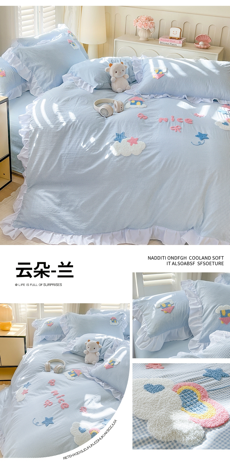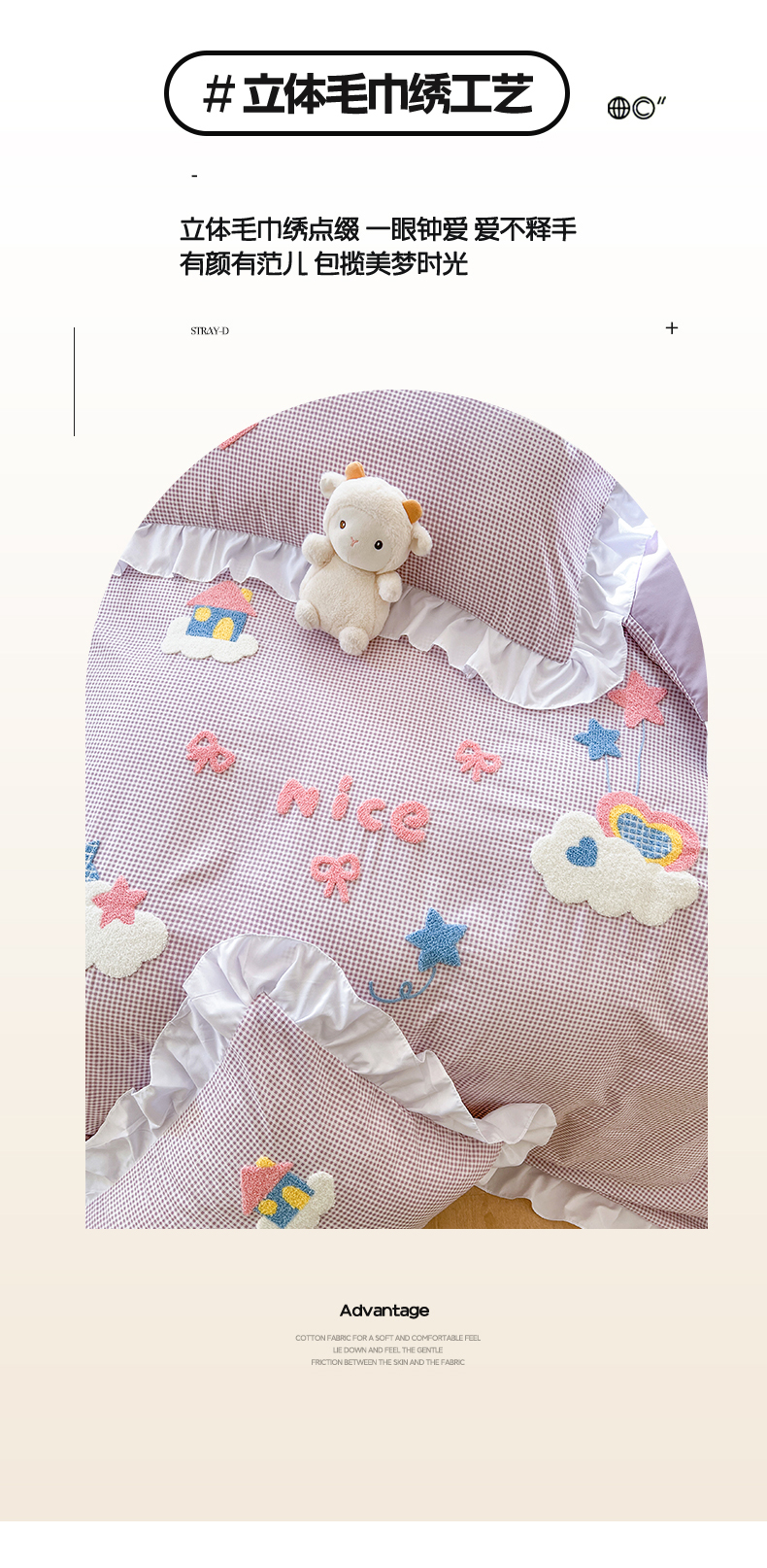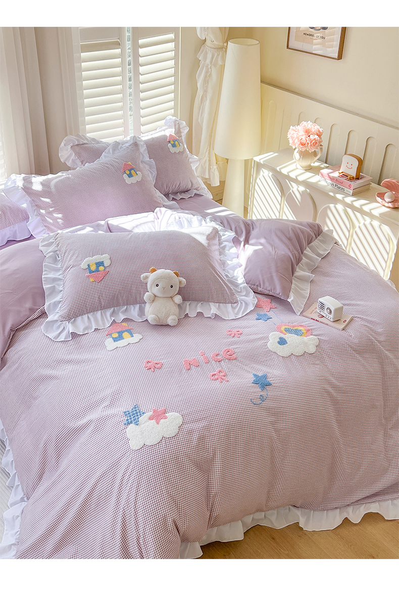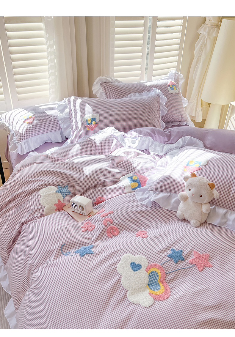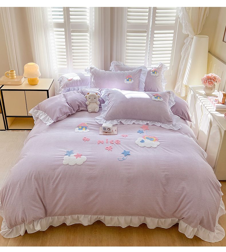 (总)韩都家居 2025新款韩版卡通风水洗棉毛巾绣四件套系列-云朵(包含买家秀)