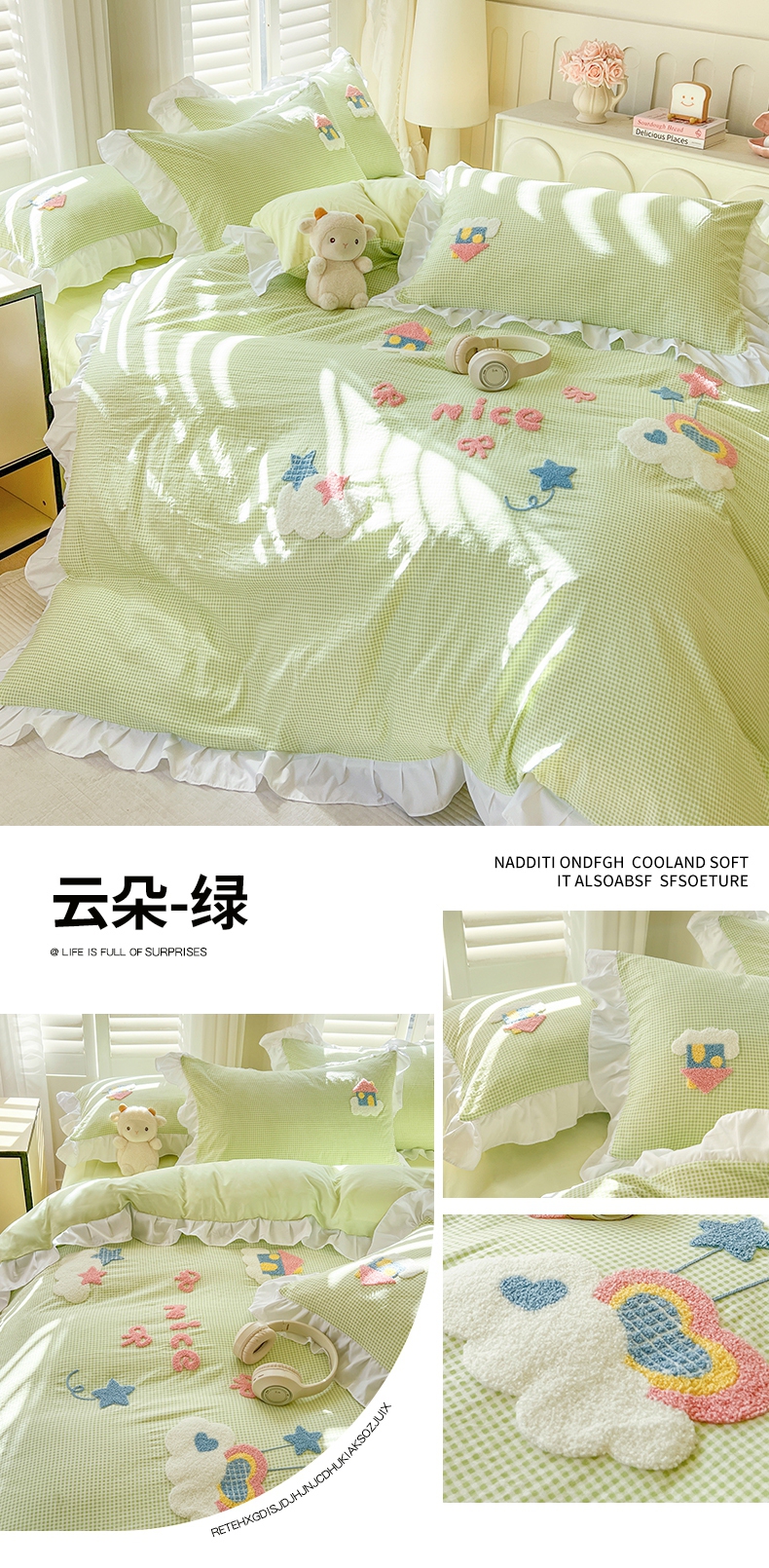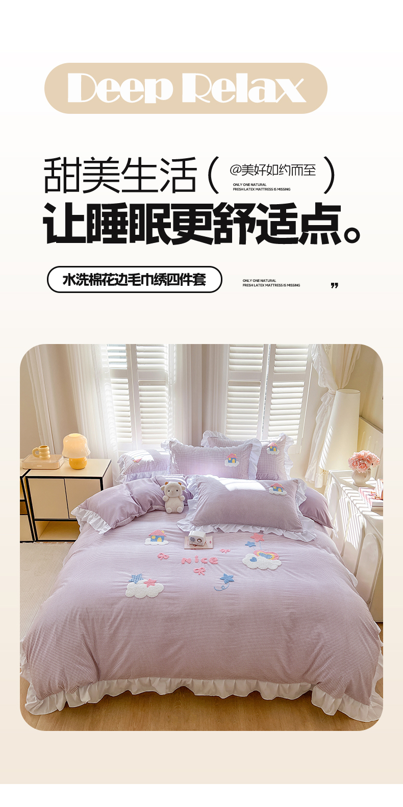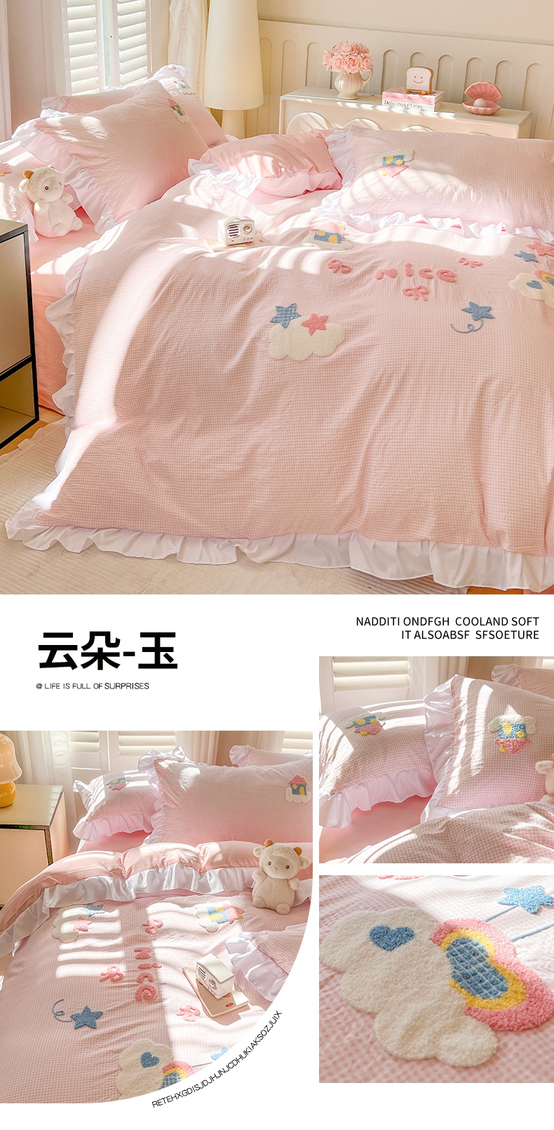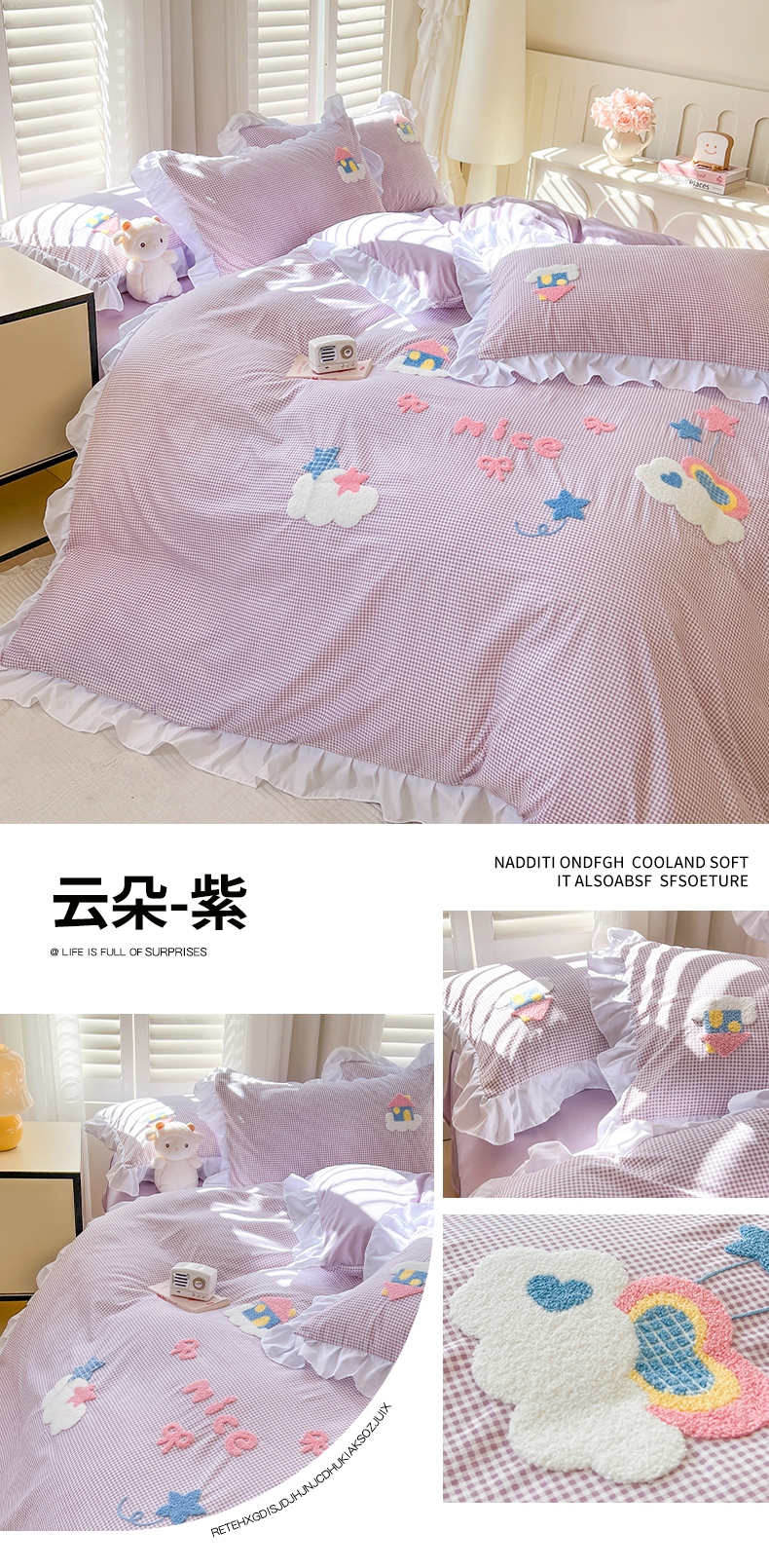 (总)韩都家居 2025新款韩版卡通风水洗棉毛巾绣四件套系列-云朵(包含买家秀)