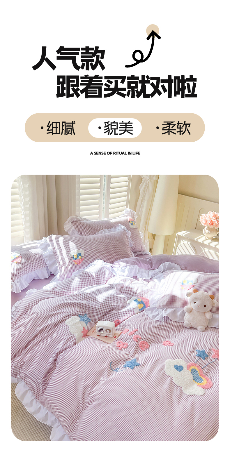 (总)韩都家居 2025新款法式花边印花牛奶绒四件套,茶花,豹纹咖,画蝶,加州风情,洛莉,陌离,南瓜,岁月留声,忘忧,艺境