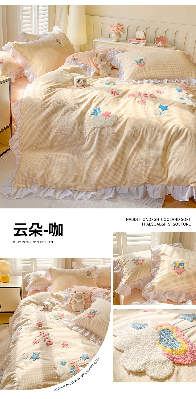 (总)韩都家居 2023新款韩版工艺款床裙款雪梨系列四件套,雪莉-桔,雪莉-浅玉,雪莉-星空兰,雪莉-芝士奶油