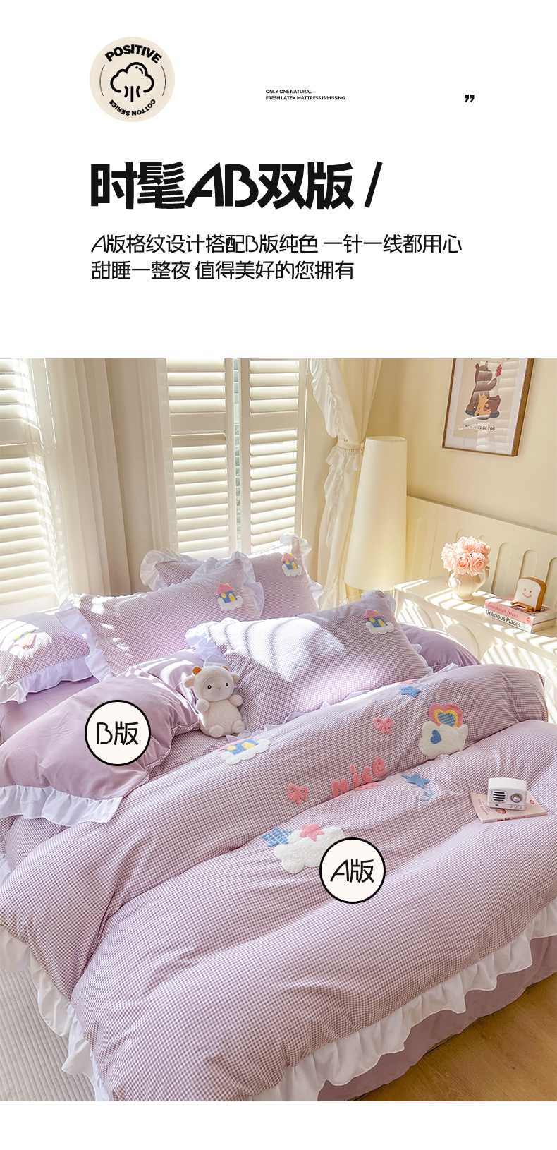 (总)韩都家居 2023新款公主风花边双拼四件套,粉玉奶黄,粉玉浅紫,奶油黄,奶油青绿,青绿奶黄,天蓝浅粉
