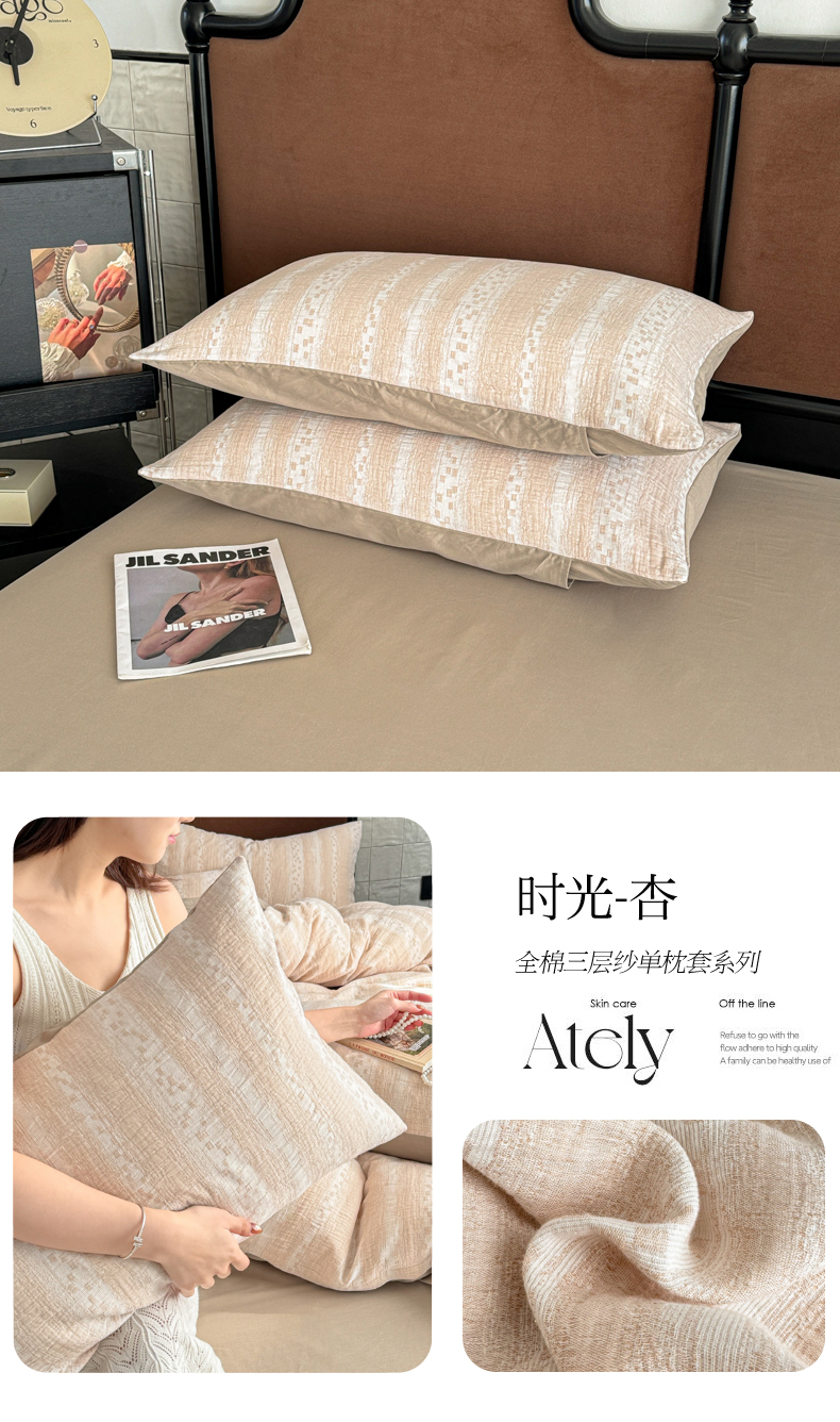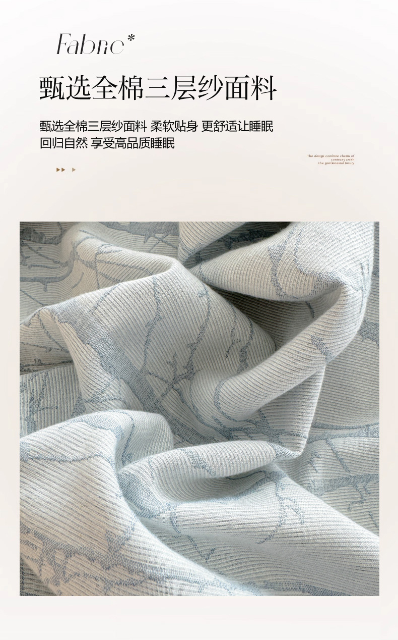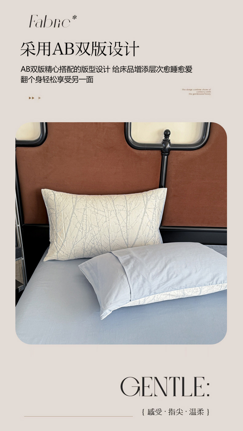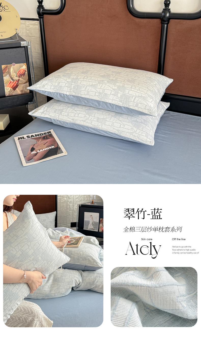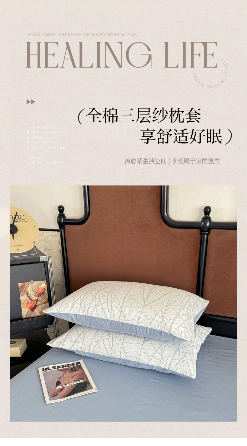 商品名称:眠博士2025新款AB版简约时尚A类全棉三层纱系列单枕套 三层纱-春枝-蓝