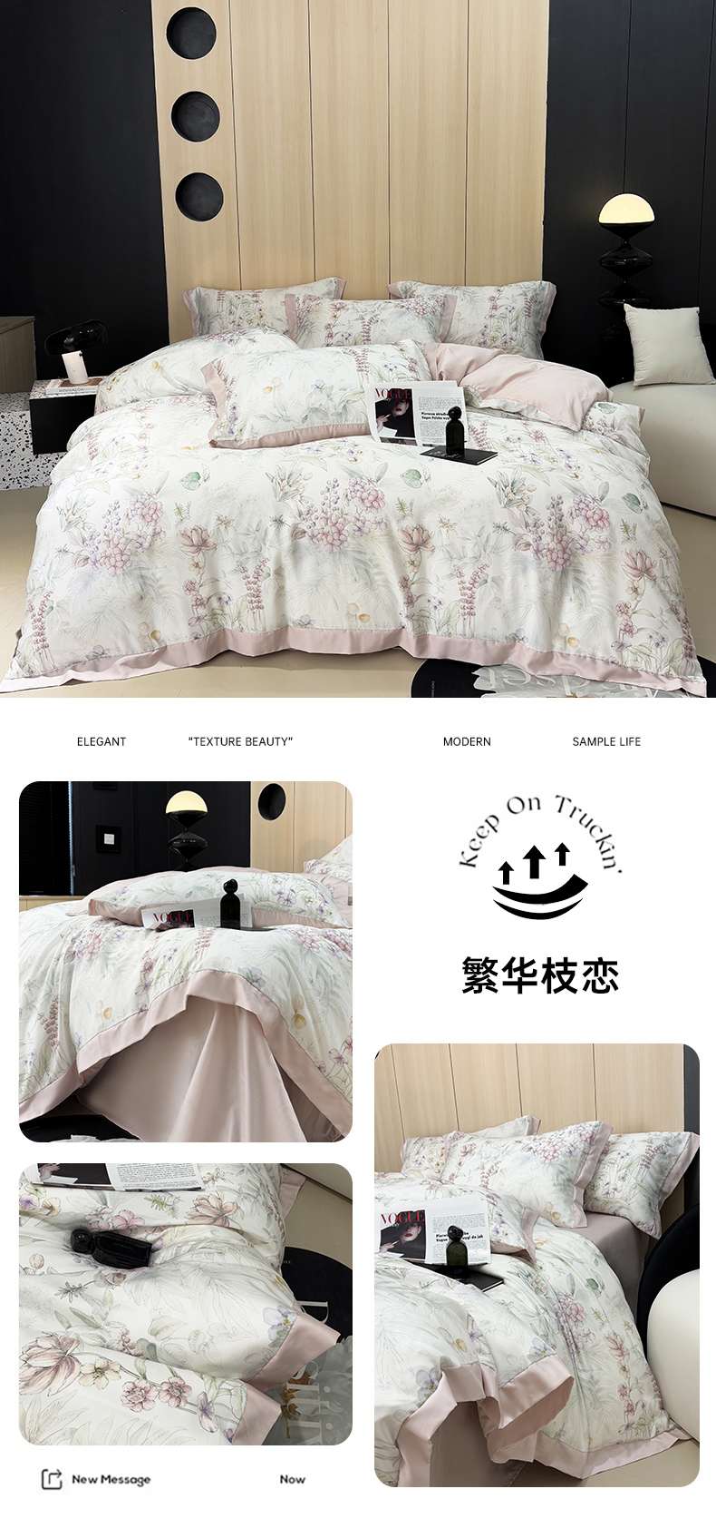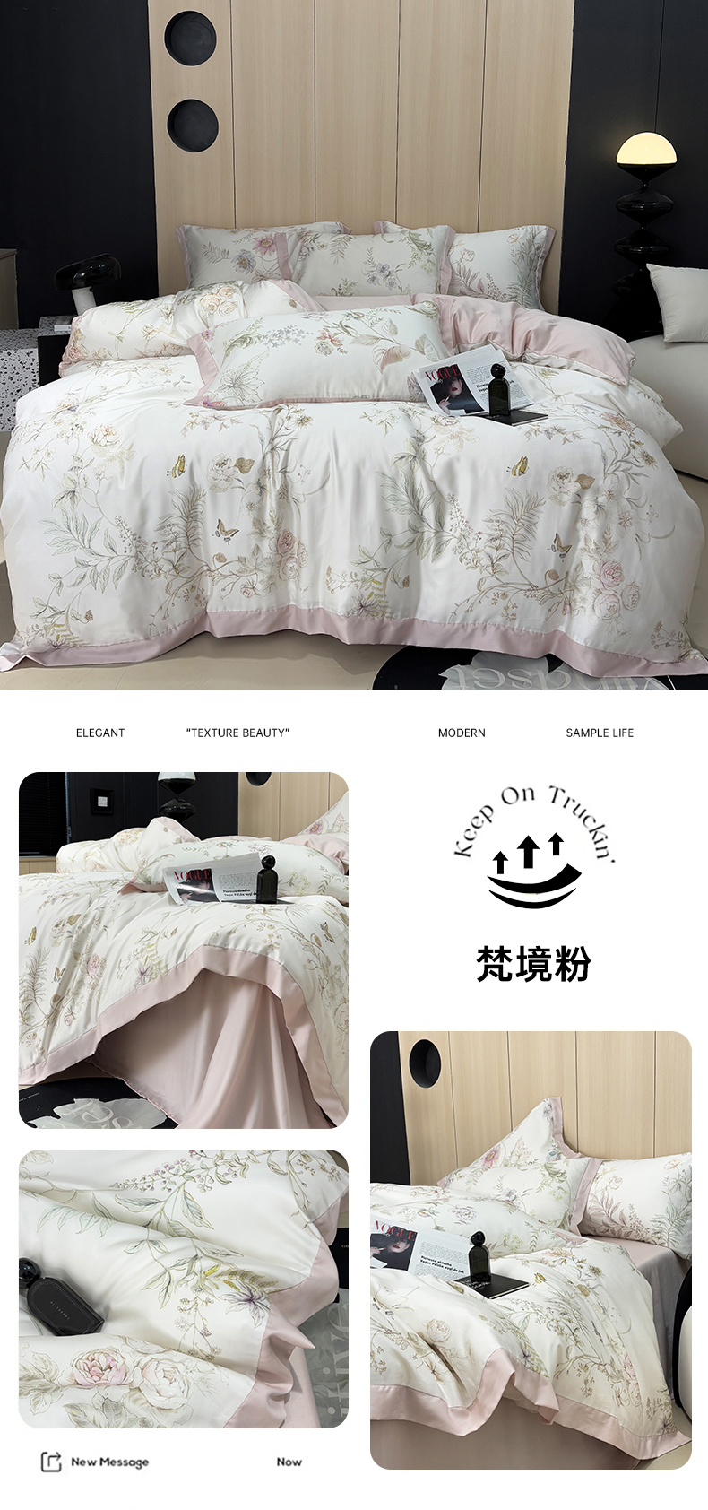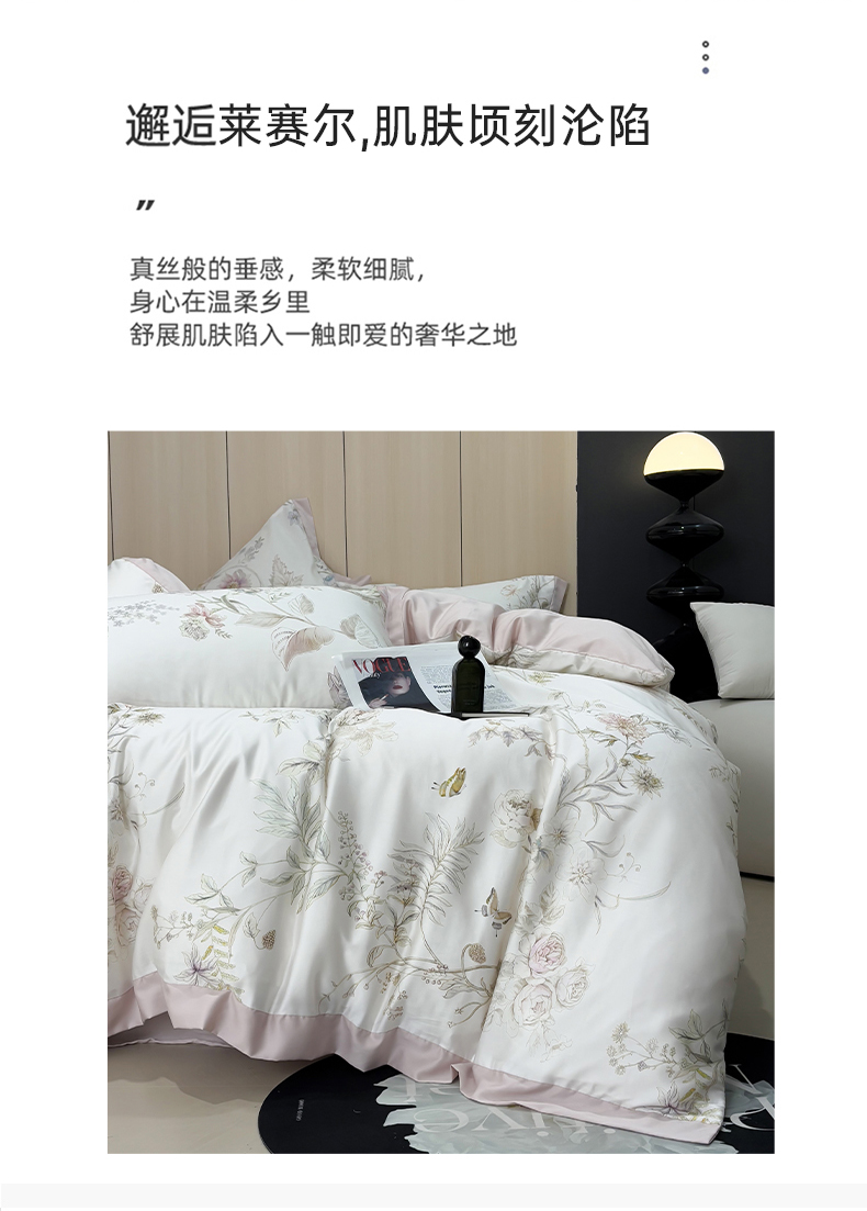 (总)慕梵家居 2025新款100%莱赛尔四件套高端轻奢套件,春日落樱,春晓雨梦,春叙恋曲,繁华枝恋,梵境粉,扶光落影,花岛邮局,花佳境咖,花影之恋,念池花粉,一蔓咖,云栀