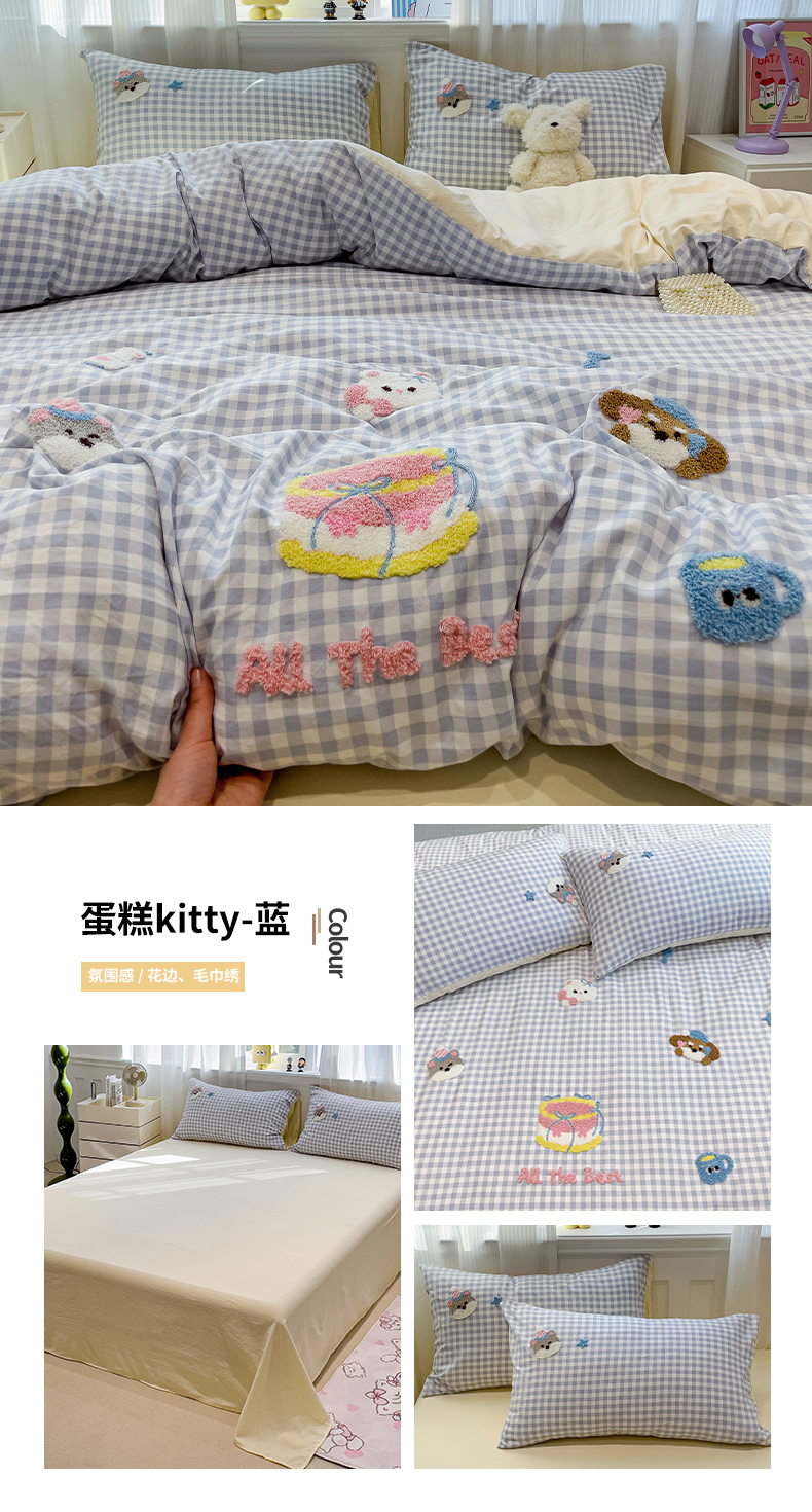 当前位置: 91家纺网 > 商品网购 > 床品套件 > 四件套 > 其它四件套 > 梦之岛 2025新款多巴胺云朵棉可爱毛巾绣四件套 蛋糕kitty-蓝