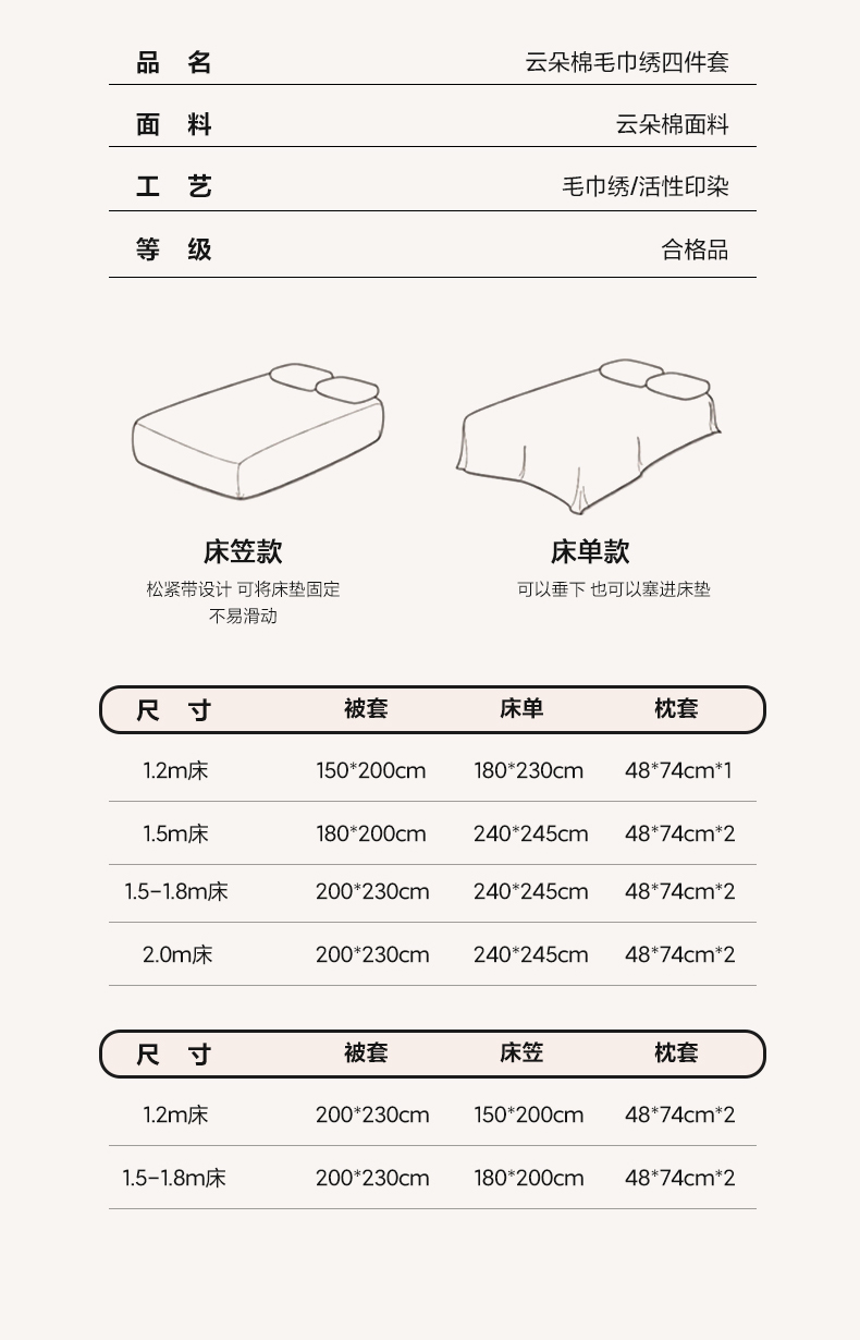 1.8m床笠四件套被套200x230 | ¥68.00 |