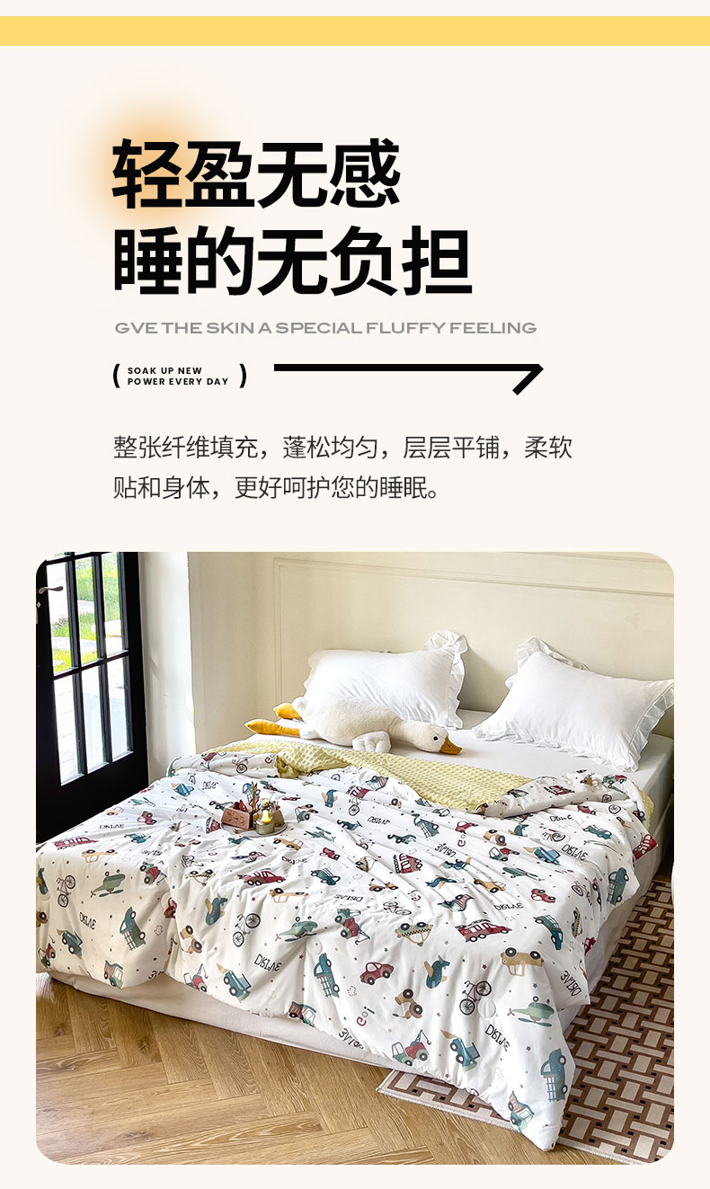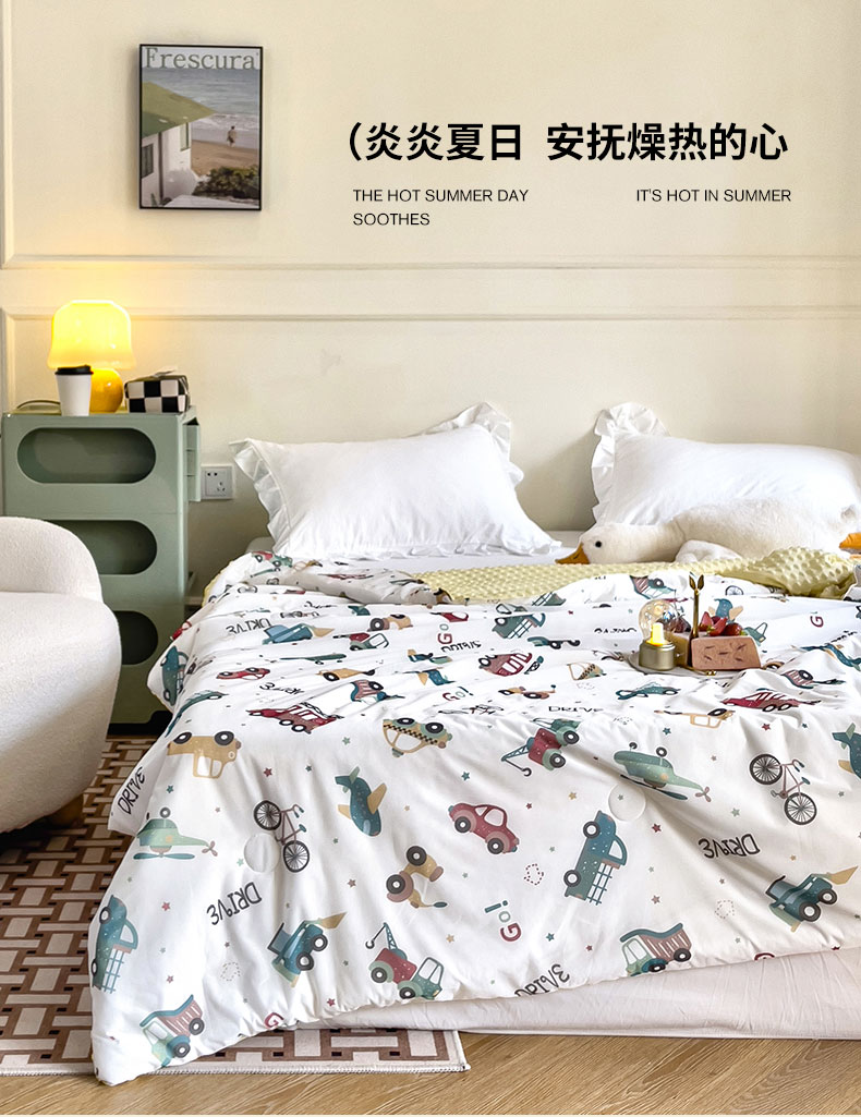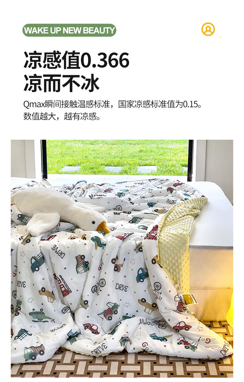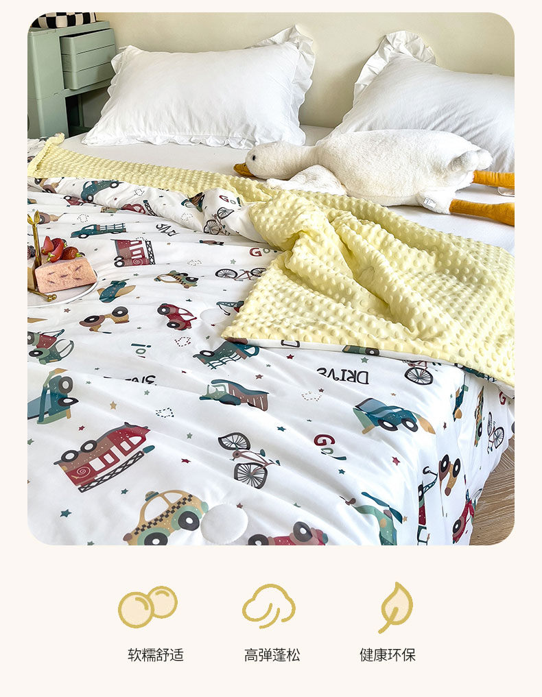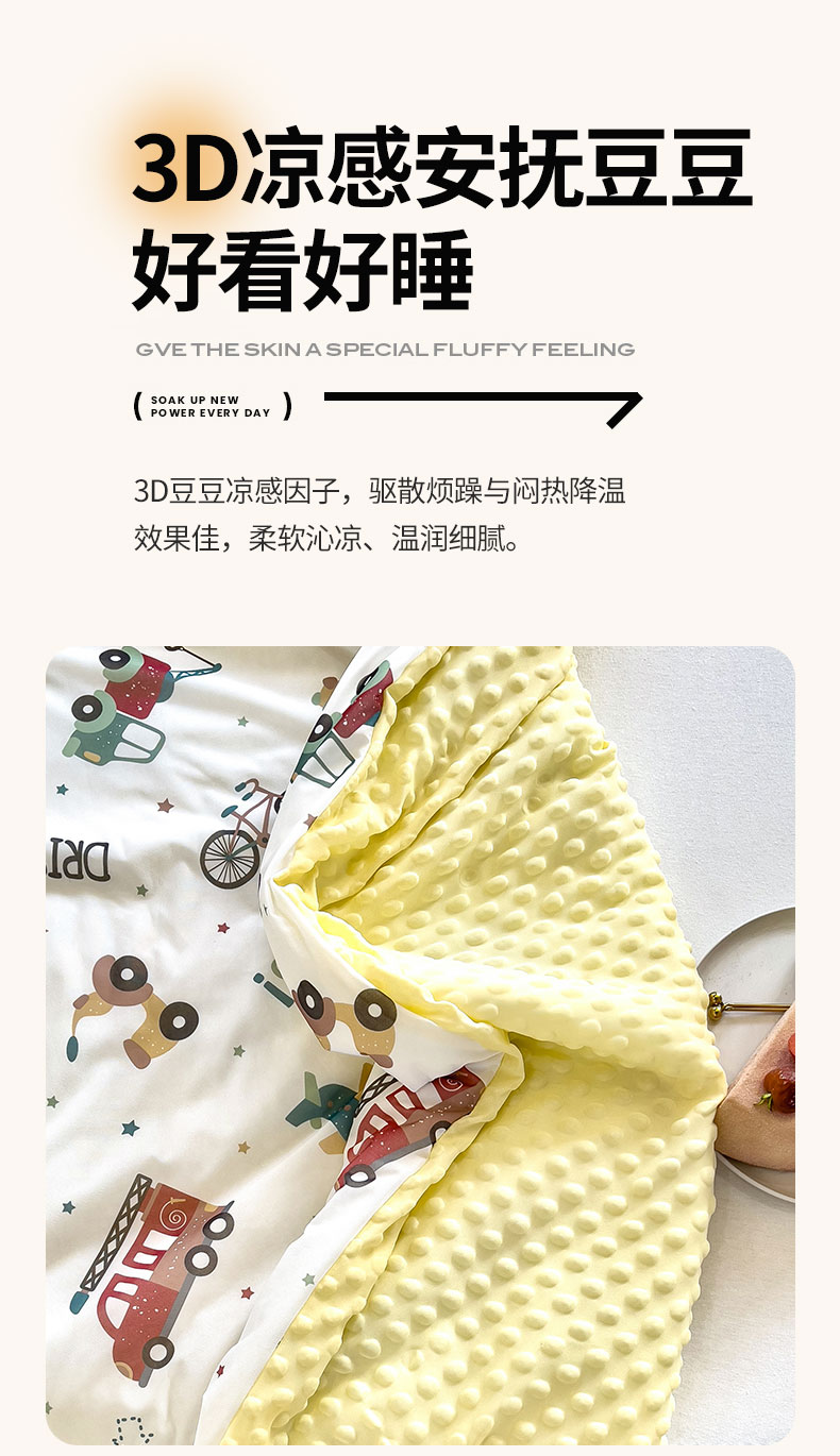 商品名称:绒梦里 2025新款儿童卡通系列A类凉感冰豆豆夏被 车车世界