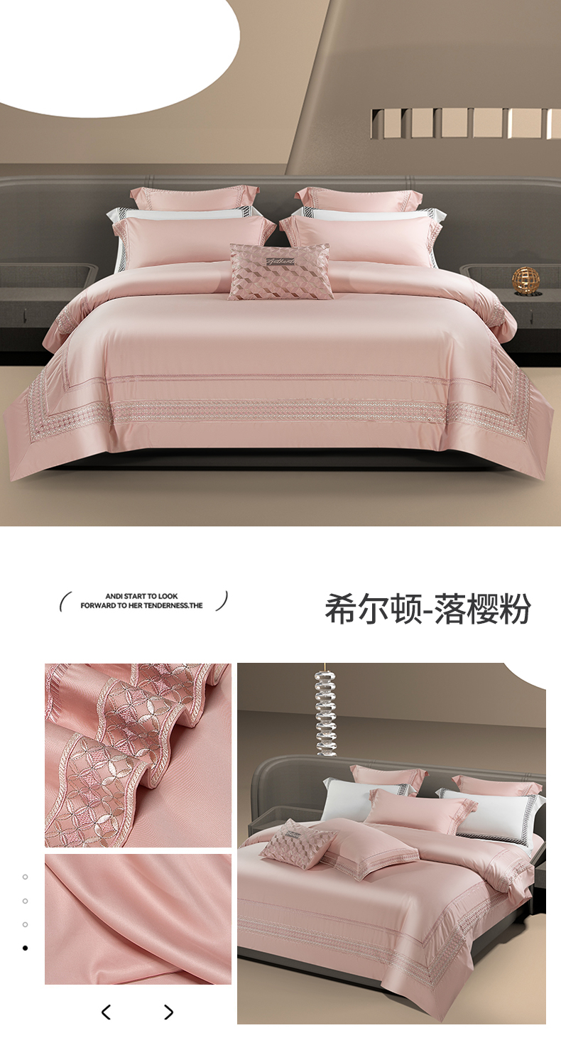 高大尚婚庆馆 2025春夏新款 长绒棉高端绣花四件套-希尔顿 落樱粉