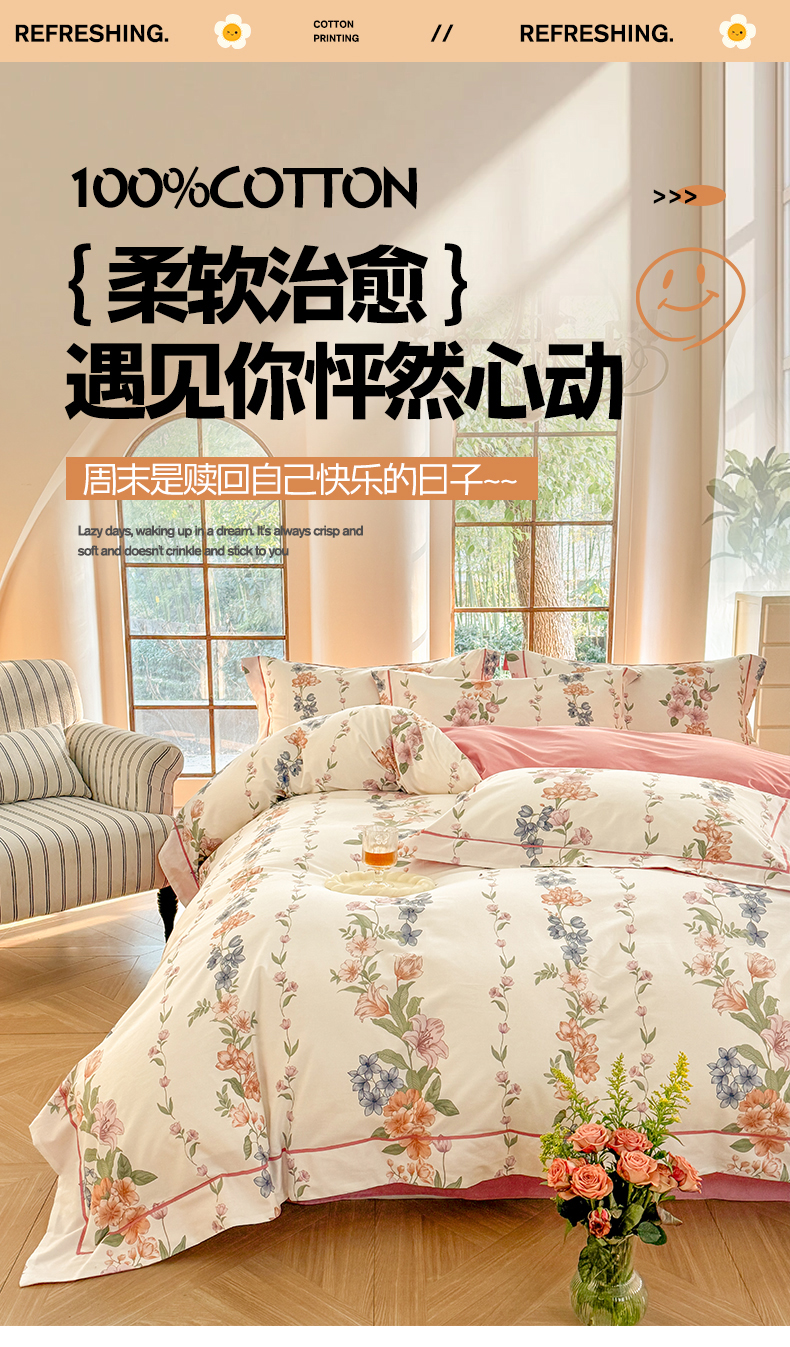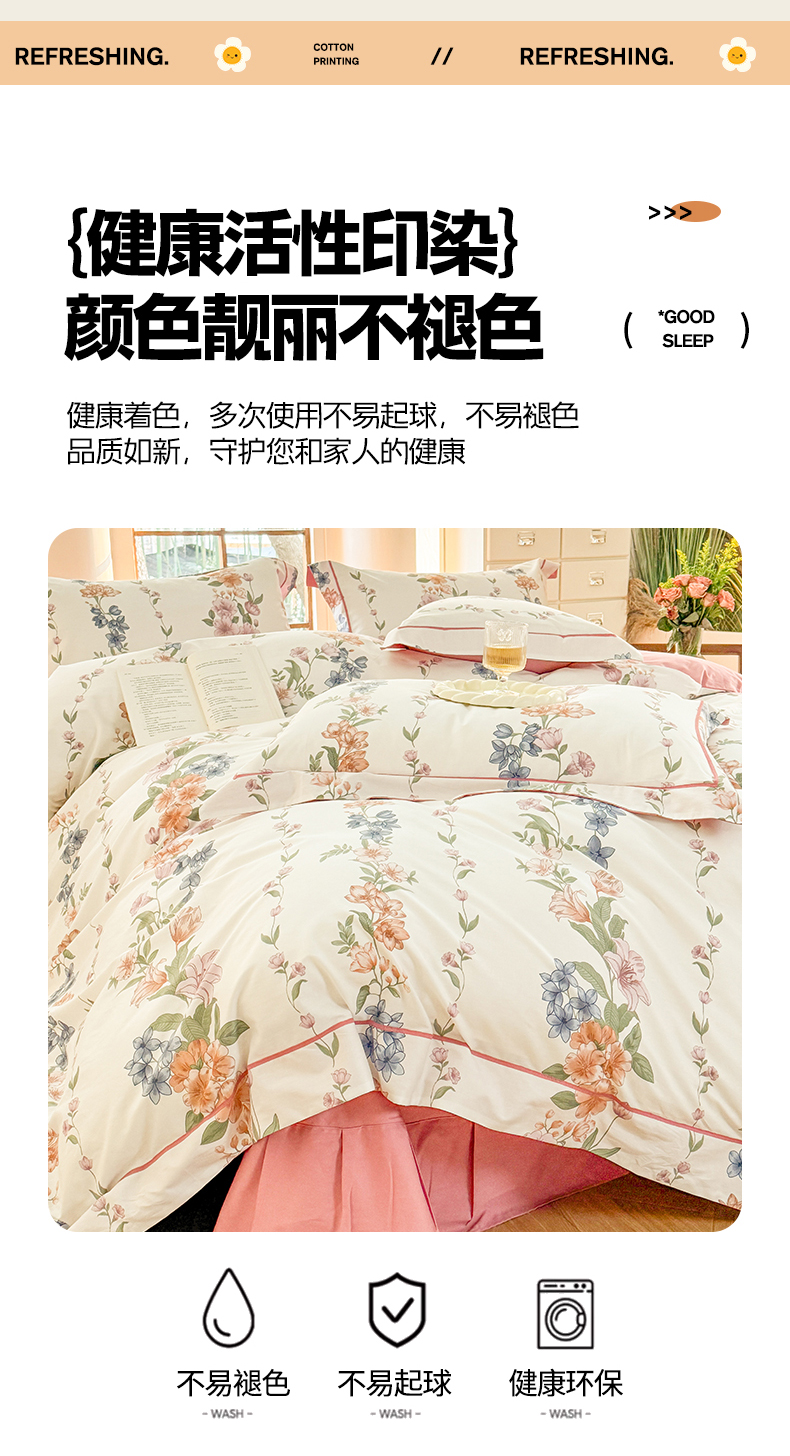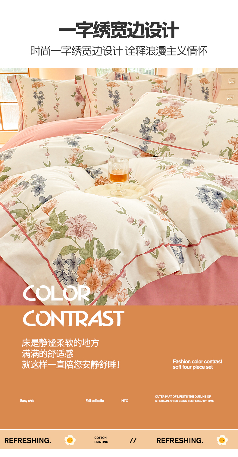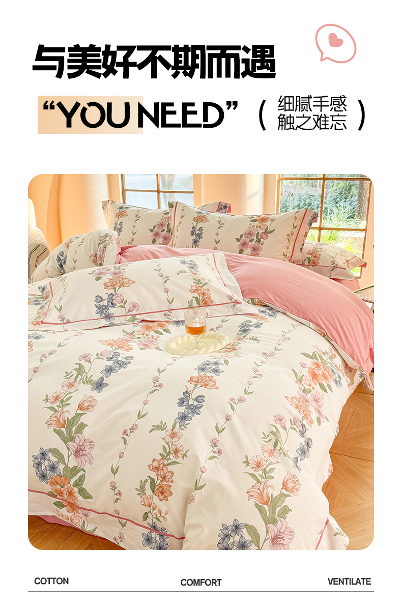 当前位置: 91家纺网 > 商品网购 > 床品套件 > 四件套 > 全棉普通四件套 > 7V 2025新款轻奢大宽边100%纯棉四件套133*76全棉喷气宽幅长绒棉被套床单床笠套件 眷恋