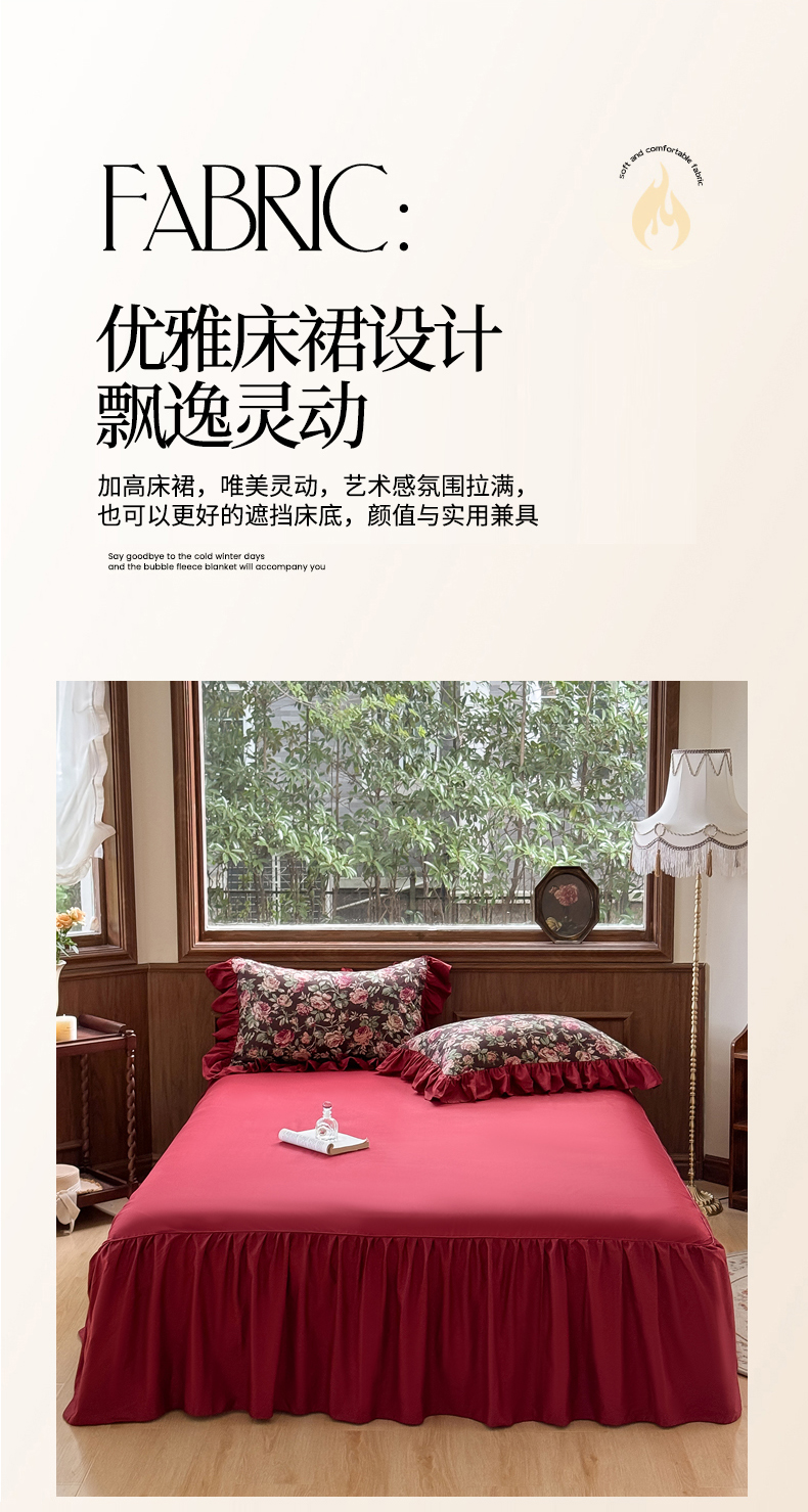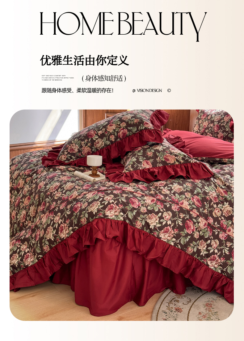(总)胜权家纺 2025新款全棉13372法式床裙款活性印花四件套,莫妮卡-湖绿,莫妮卡-酒红