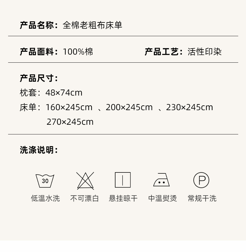 商品名称:(总)格里芬家纺 2025新款全棉纯色老粗布床单
