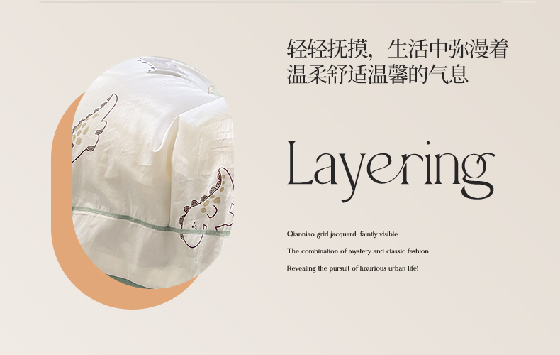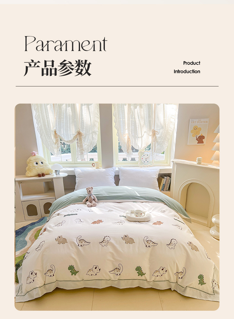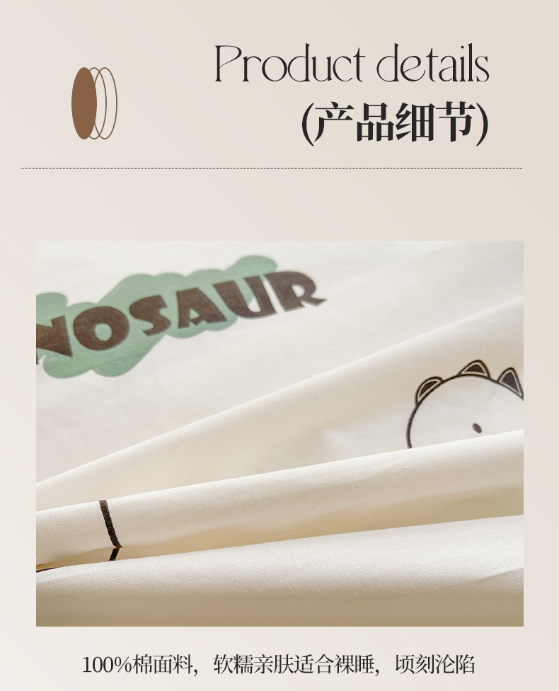 商品名称:7V 2025全棉被套133*76纯棉轻奢宽边单被套喷气长绒棉面料 侏罗纪