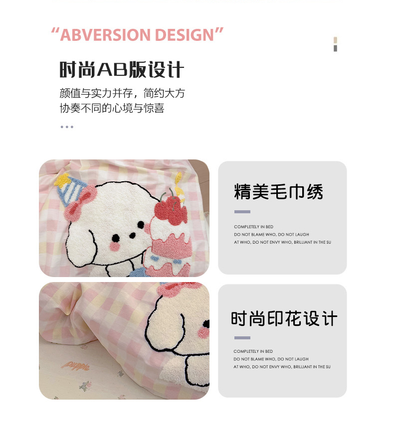 云锦家居 2025新款13370纯棉毛巾绣呆萌系列四件套 蛋糕狗狗