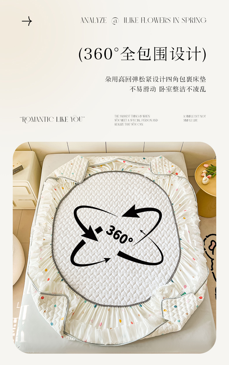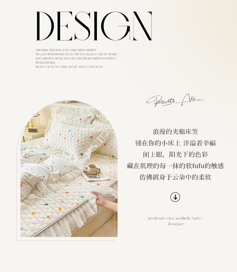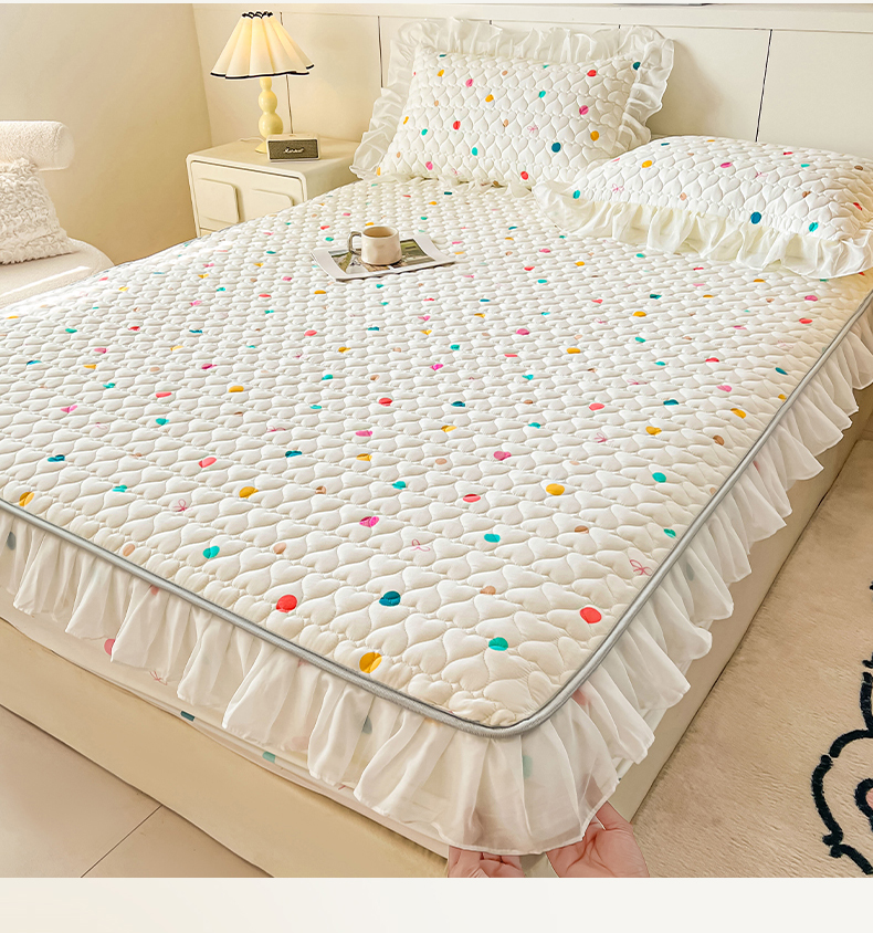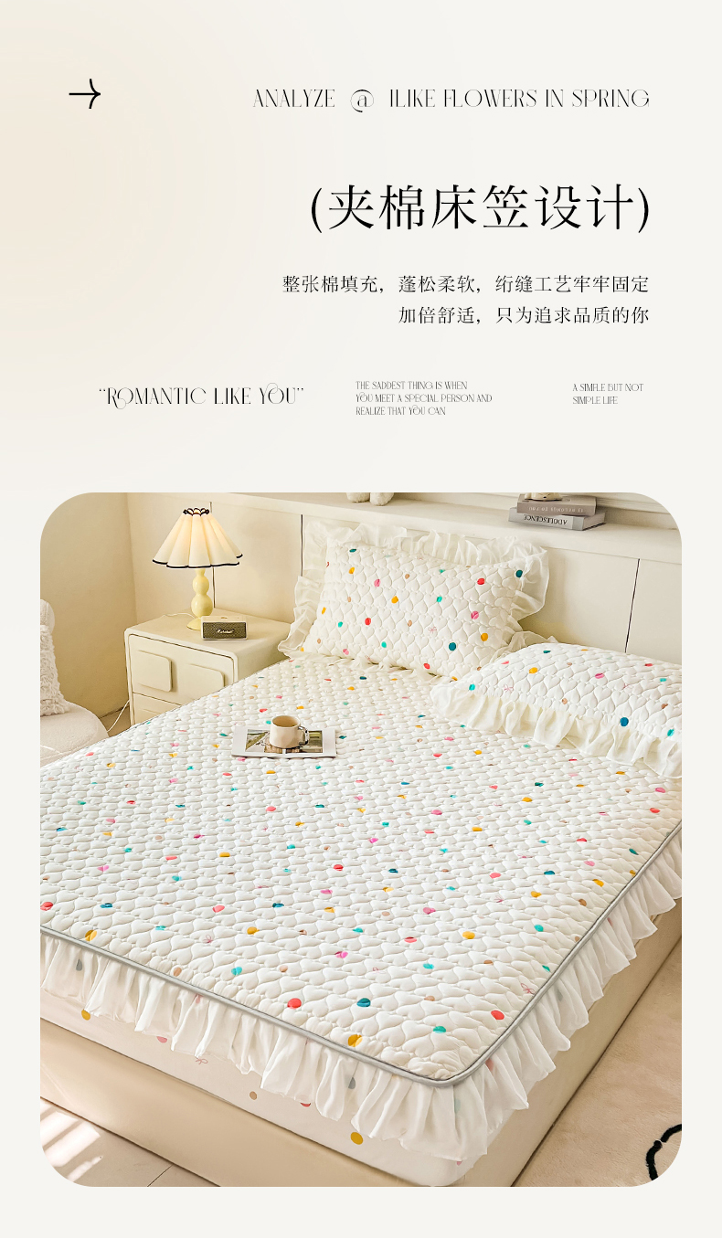 • 91家纺网 家纺一手货源 找家纺 眠势力 2025新款韩版花边床笠雪纺公主风ins夹棉四季款床罩保护套 彩色波点