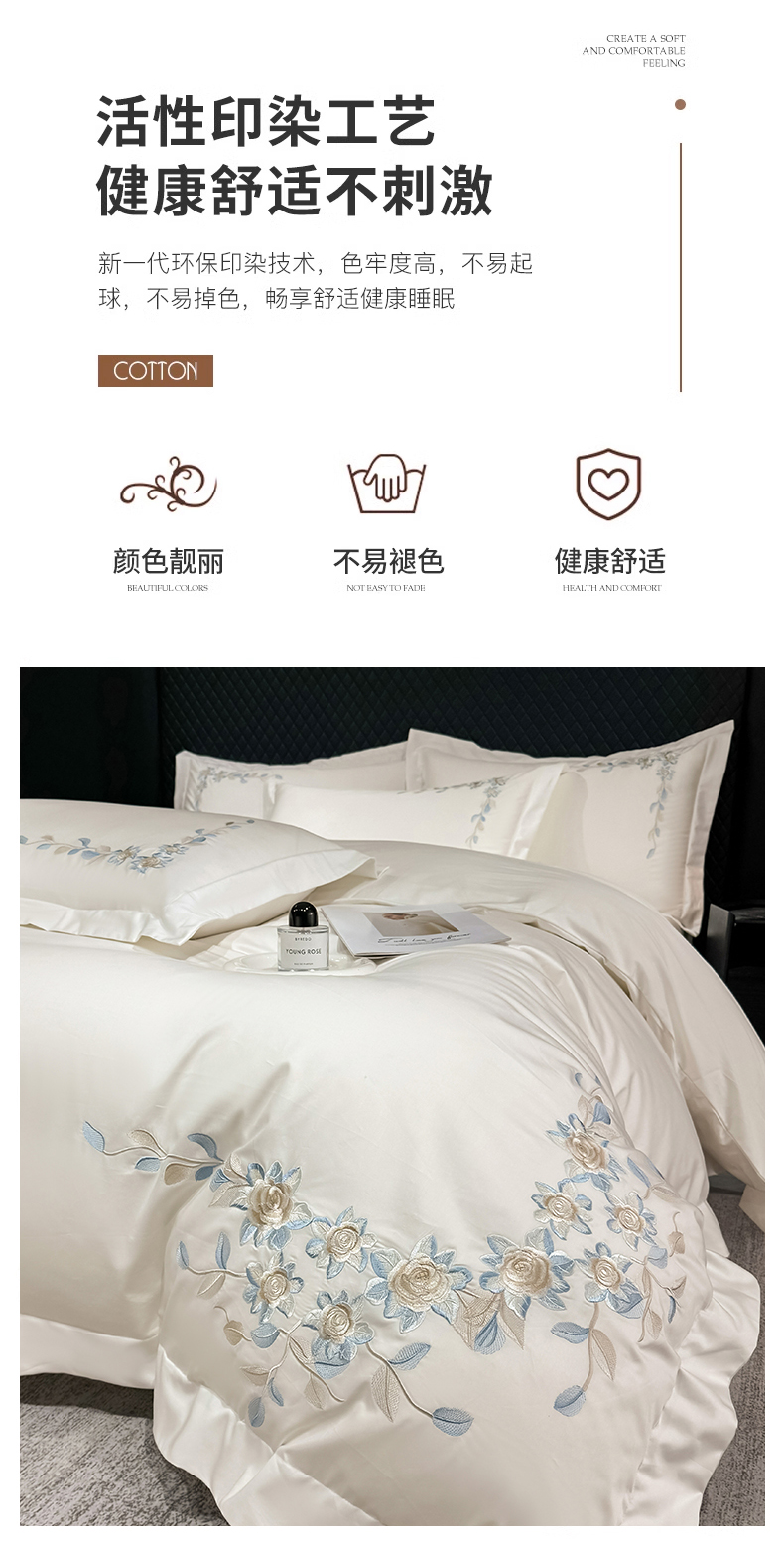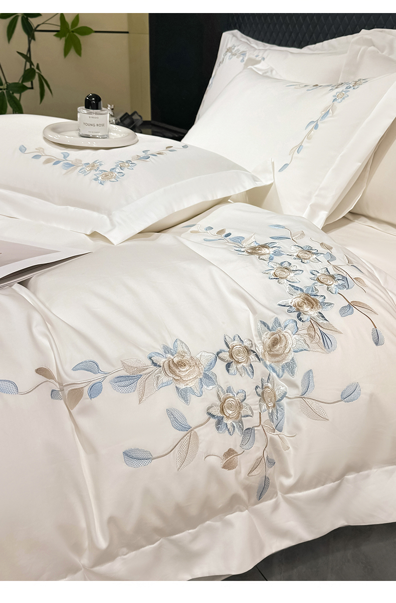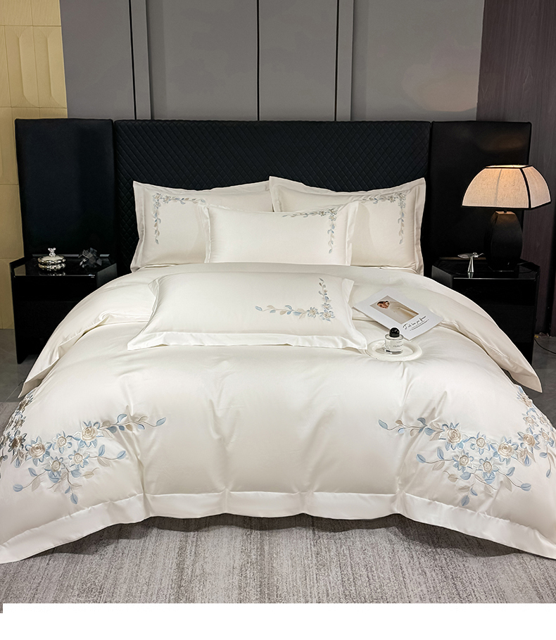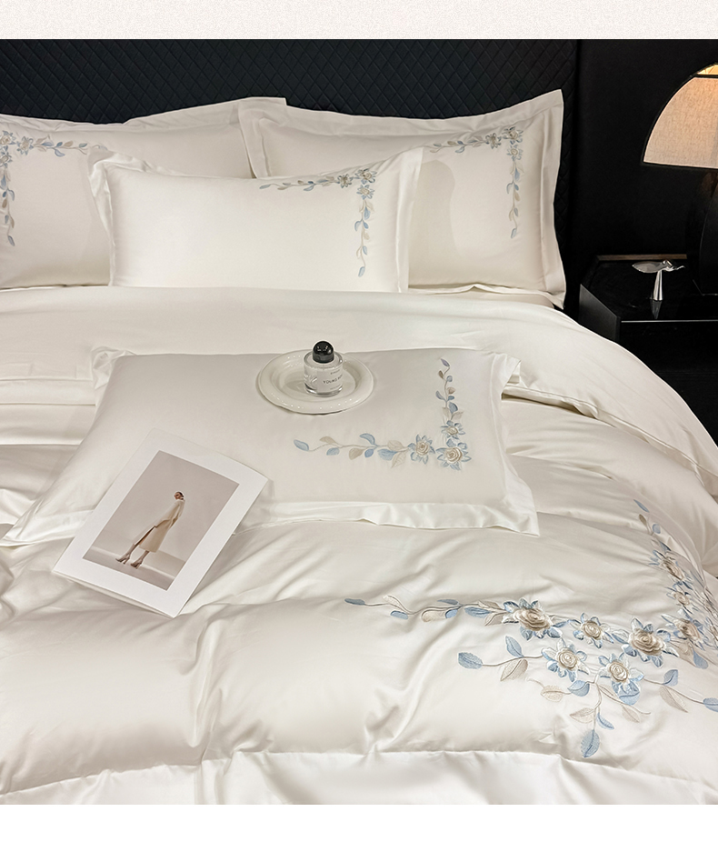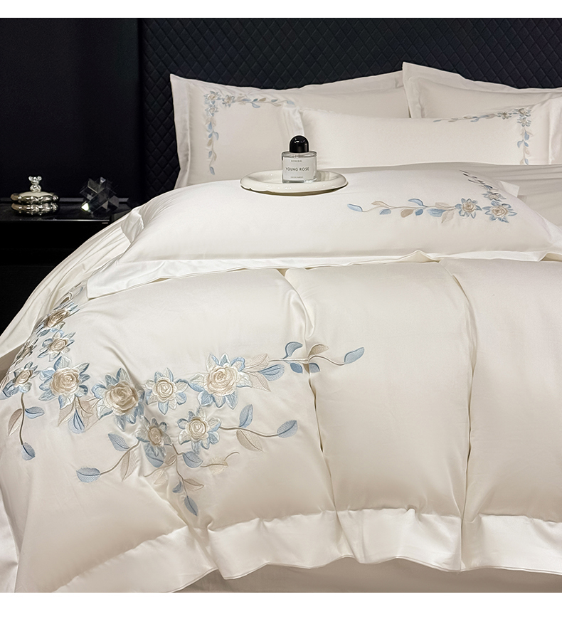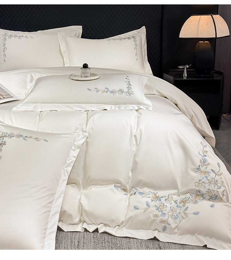 当前位置: 91家纺网 > 商品网购 > 床品套件 > 四件套 > 全棉普通四件套 > (总)KA家纺2025春夏A类纯棉全棉贡缎绣花长绒棉四件套 伊芙琳系列