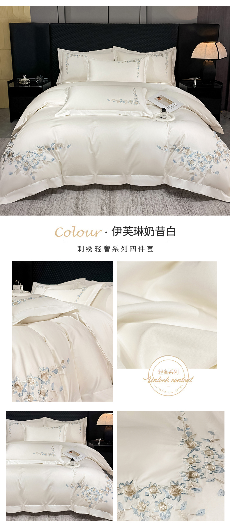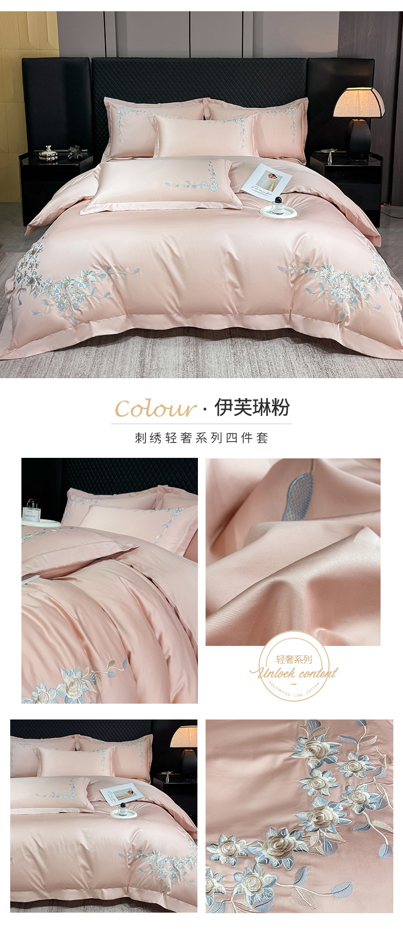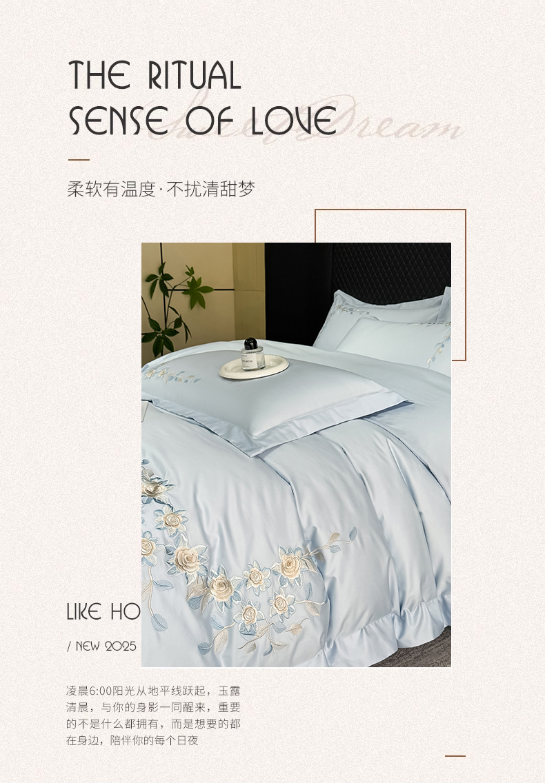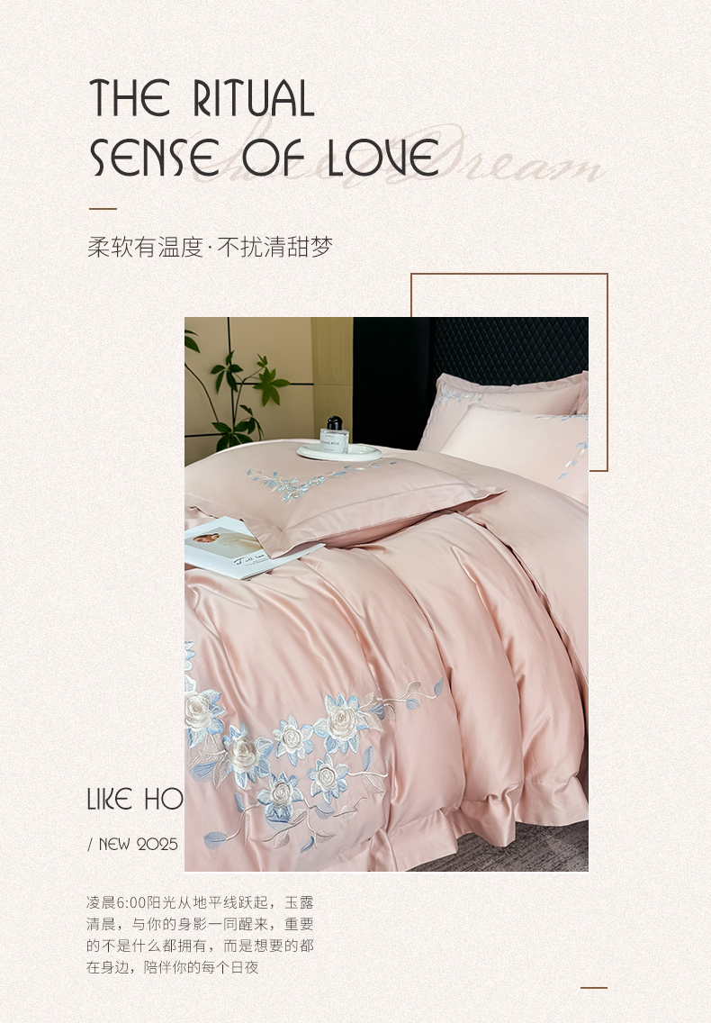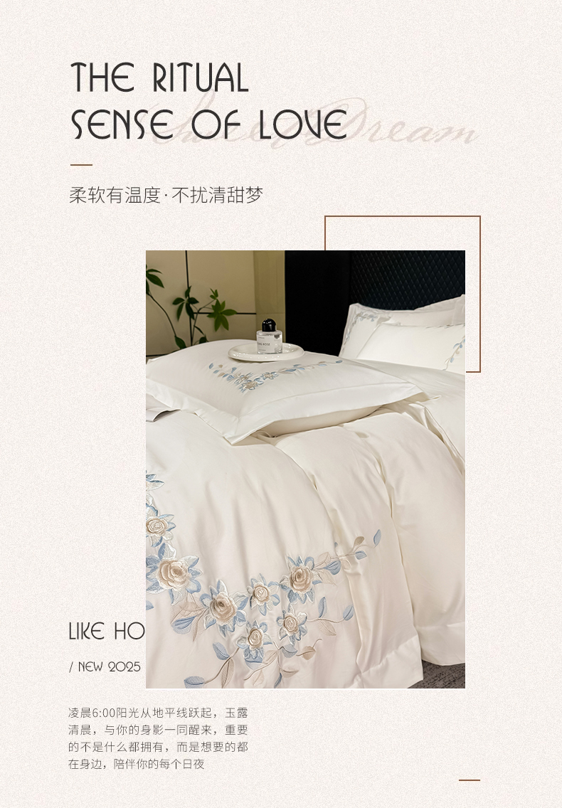 当前位置: 91家纺网 > 商品网购 > 床品套件 > 四件套 > 全棉普通四件套 > (总)KA家纺2025春夏A类纯棉全棉贡缎绣花长绒棉四件套 伊芙琳系列