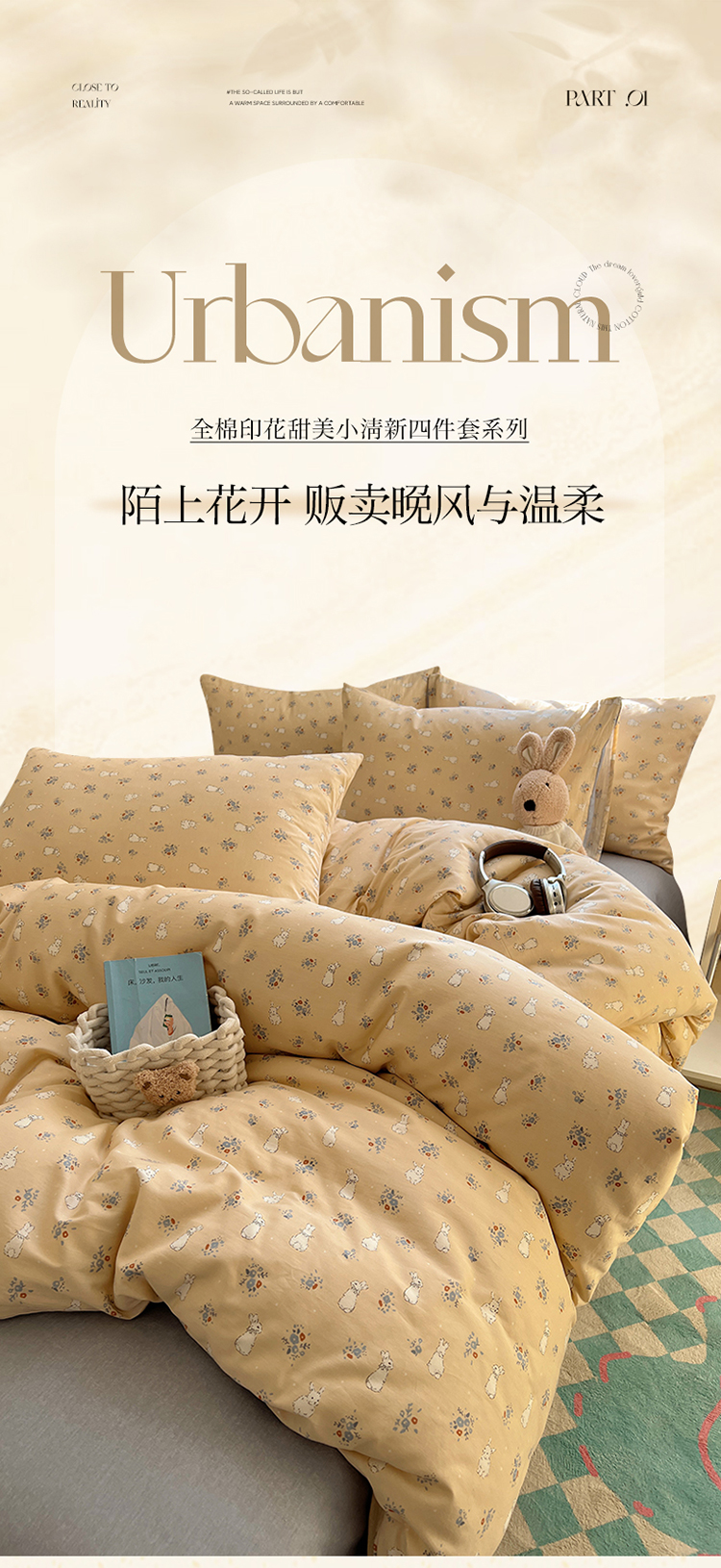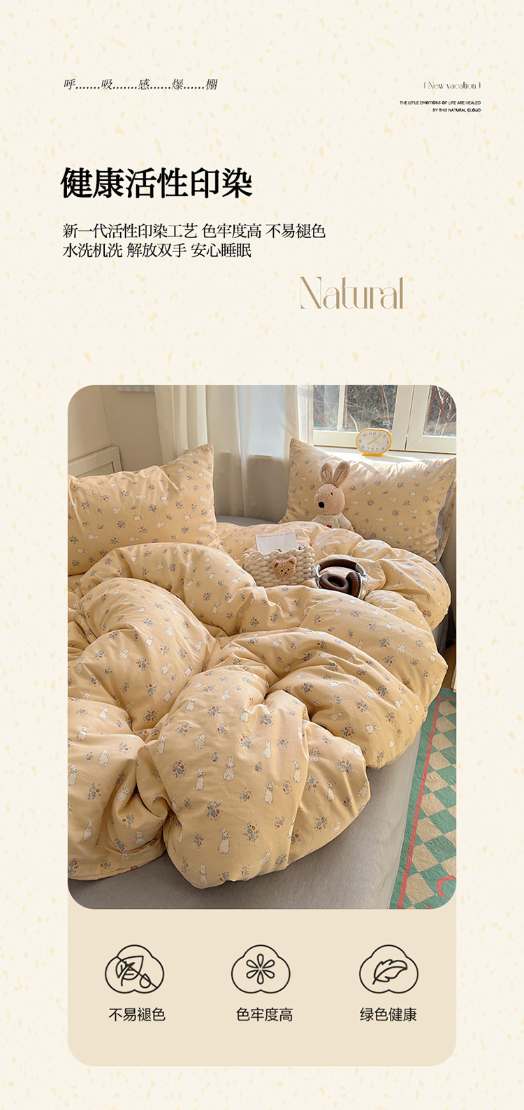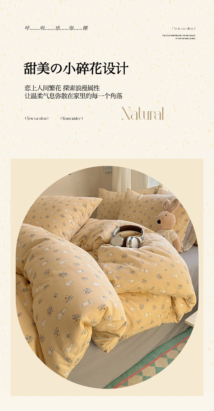 商品名称:2025春季新款13372全棉印花四件套-小清新系列 安琪兔