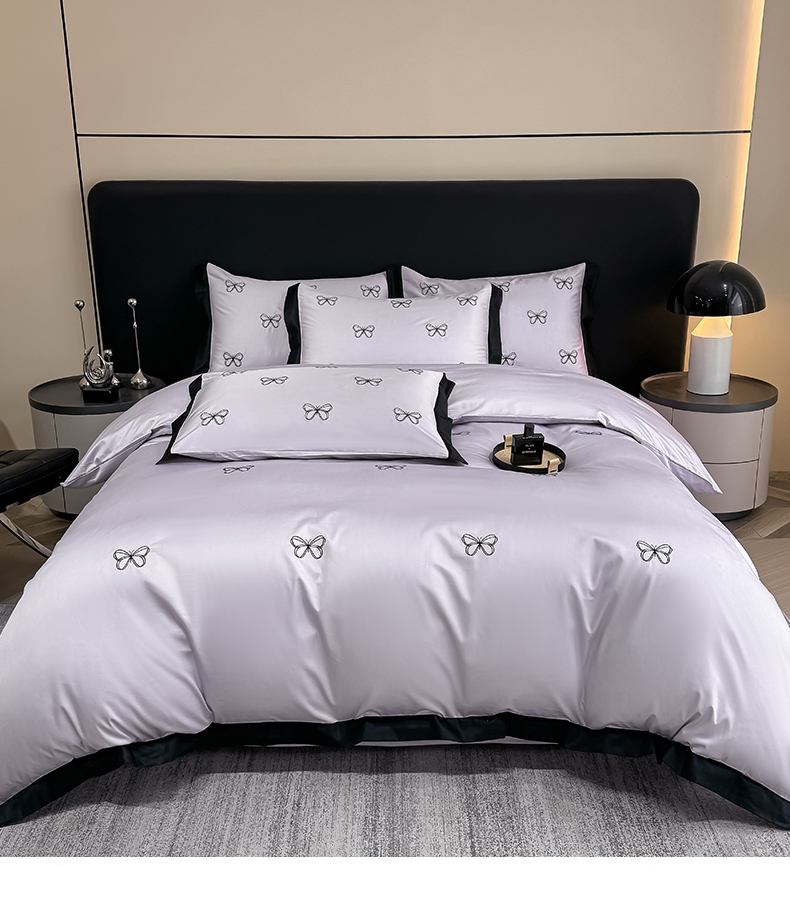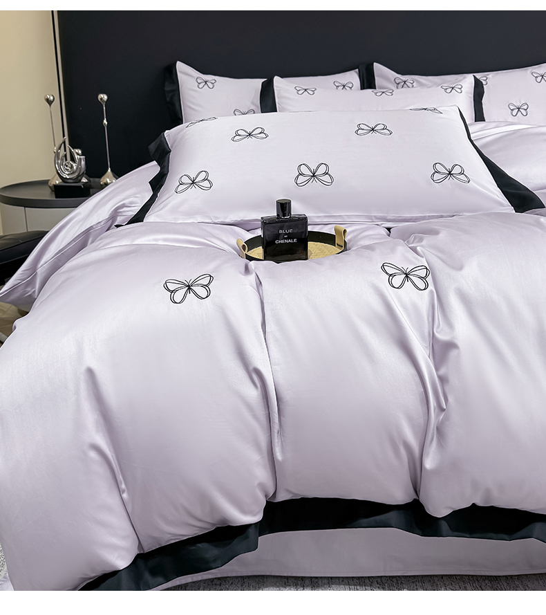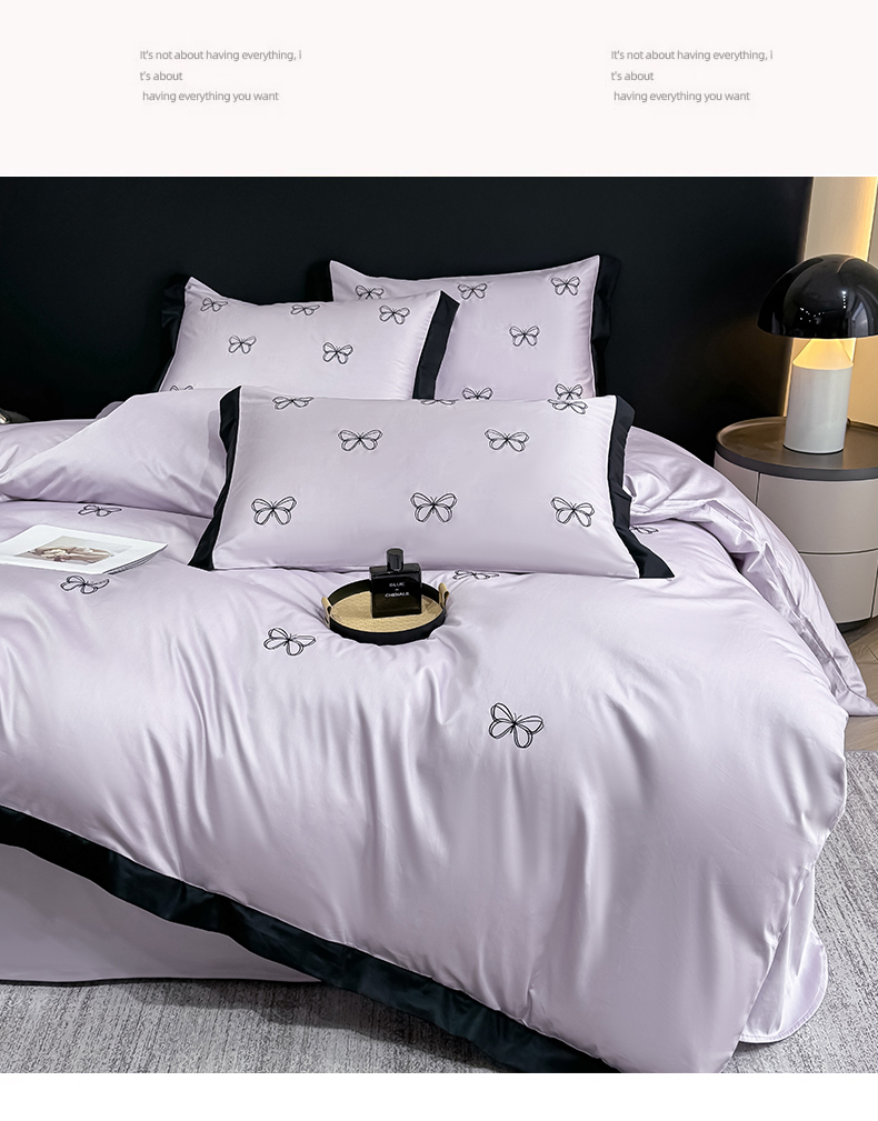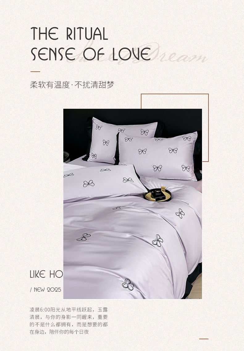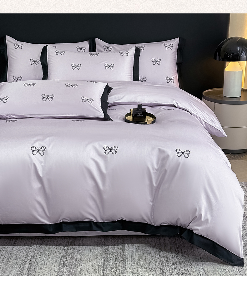 当前位置: 91家纺网 > 商品网购 > 床品套件 > 四件套 > 长绒棉四件套 > KA家纺2025春夏新款全棉绣花四件套 雨蝶系列 雨蝶紫