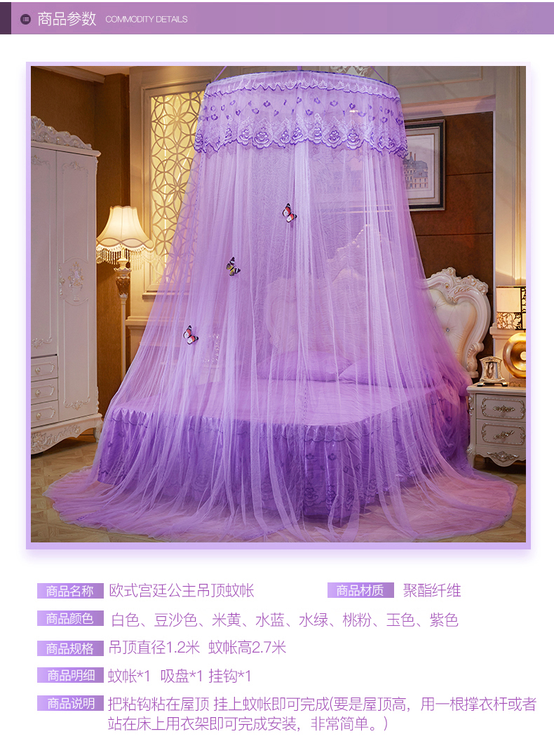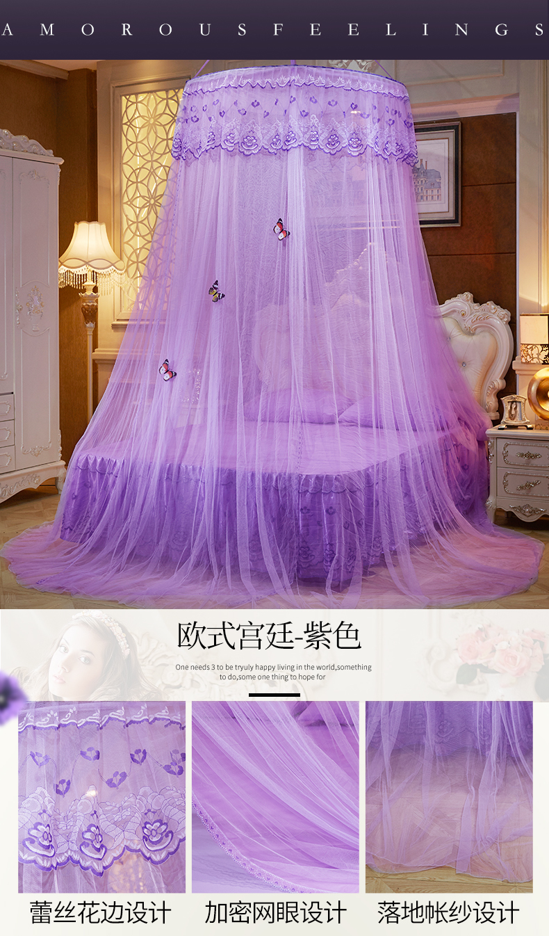 商品名称:宝莱利 2025年新款圆顶吊顶蚊帐-蝴蝶梦圆顶 紫色