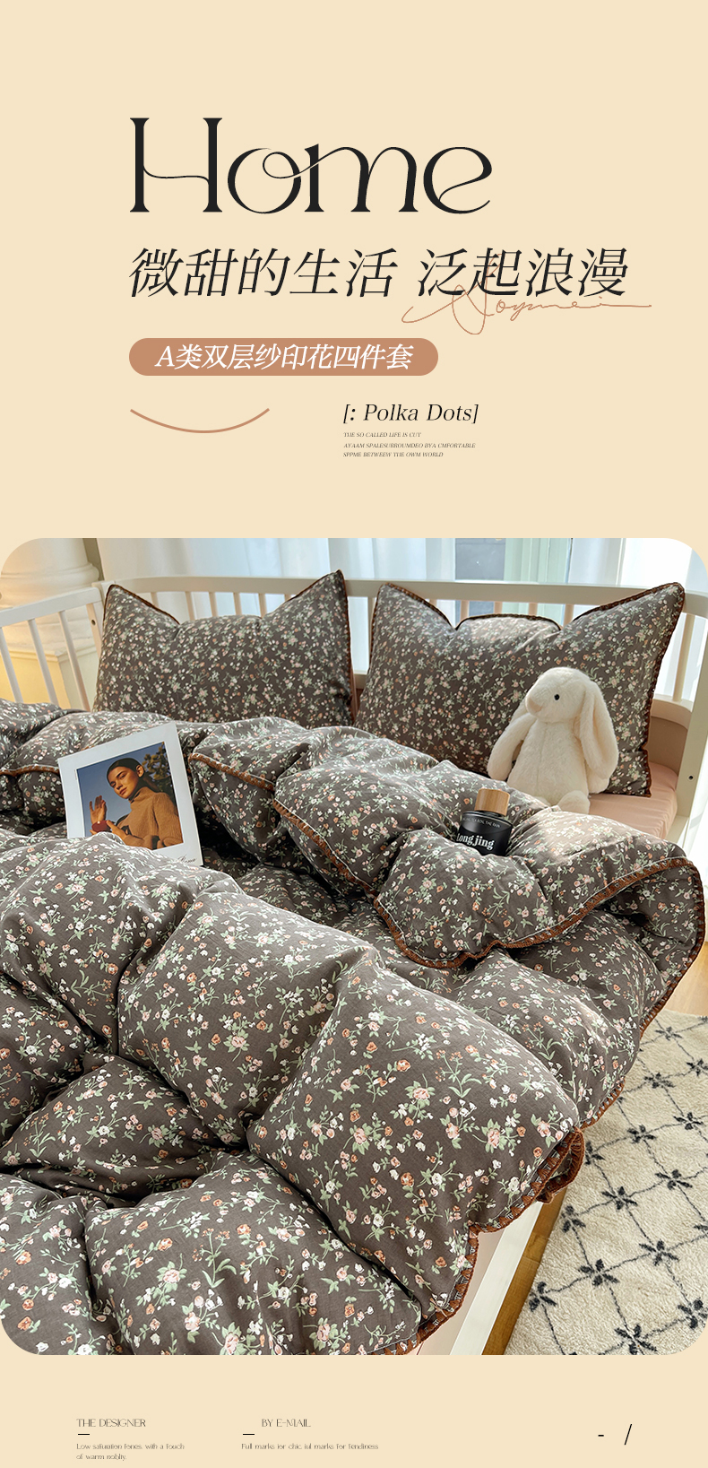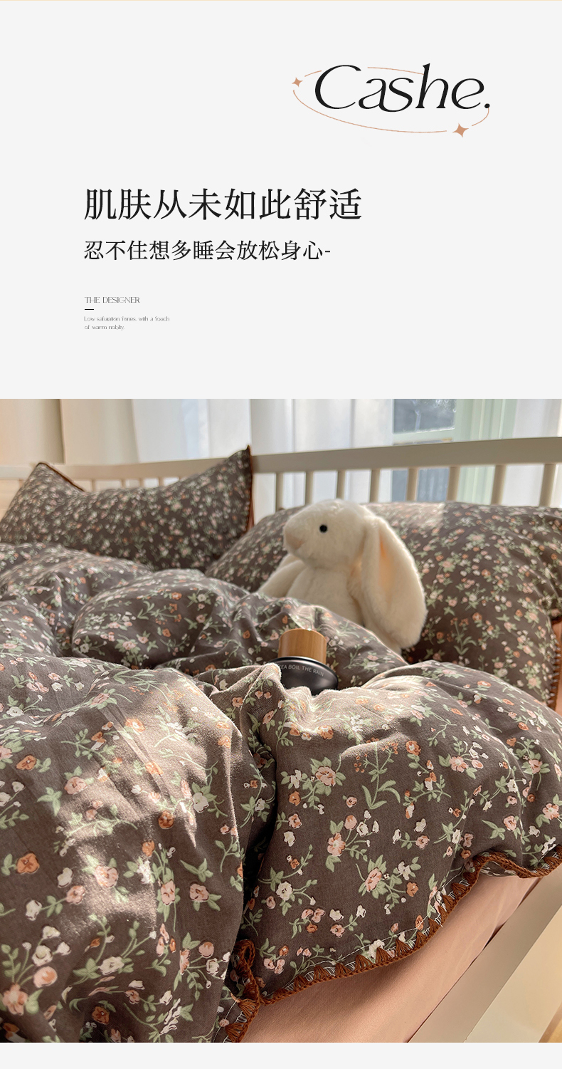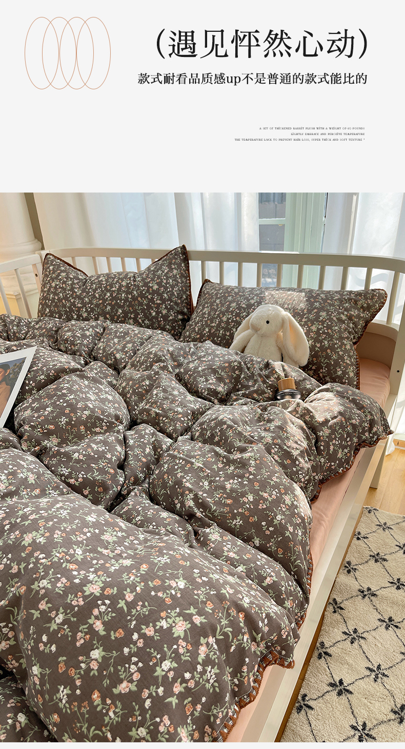 三朵 2025新款全棉双层纱三角针四件套 颜续