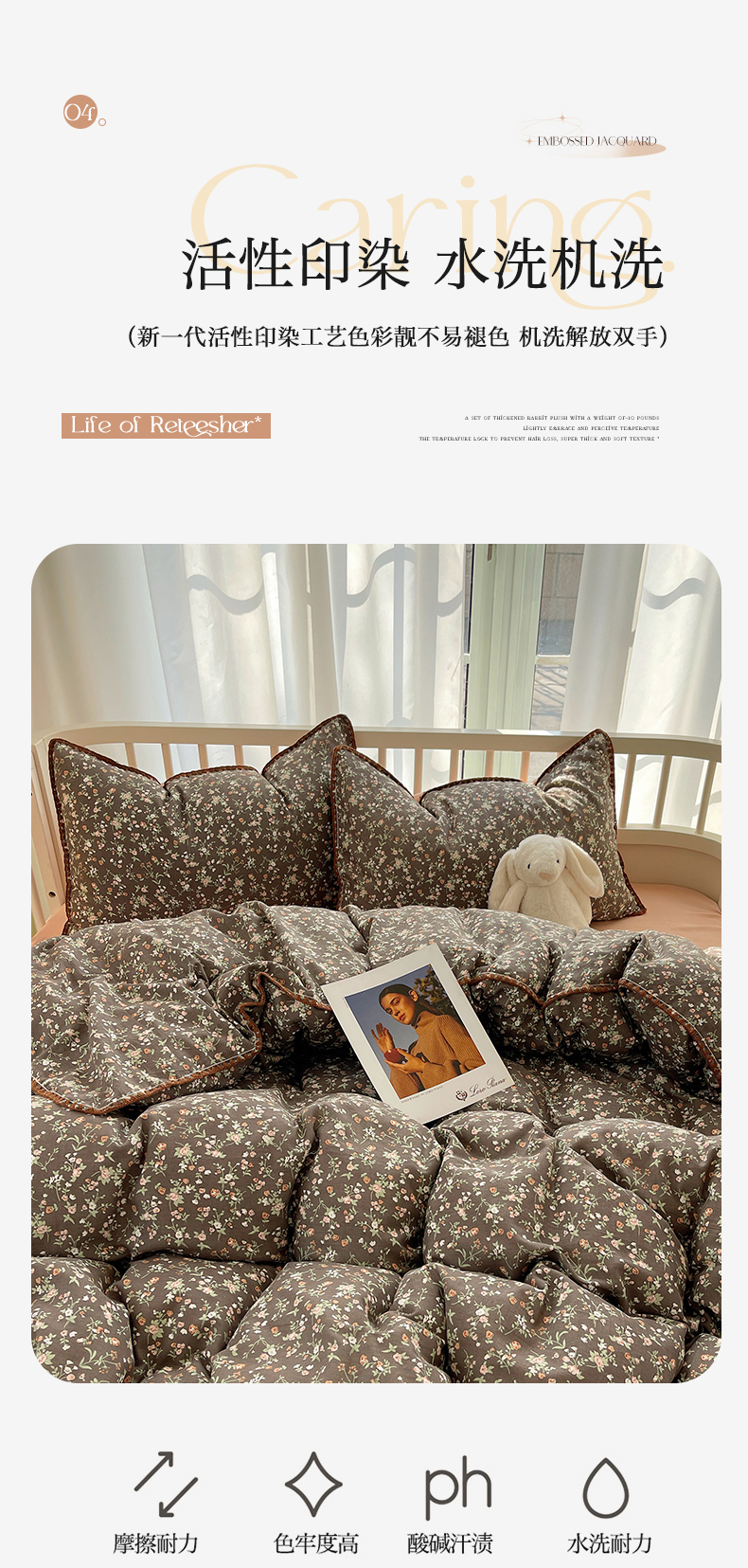 (总)三朵家纺 2026新款ins风全棉少女系花边印花系列四件套,繁花点点,花海迷人-蓝,花海迷人-紫,花意飘香,洛川花海,玫瑰庄园,梦回甜心-黄,梦回甜心-蓝,浅浅花眠,淘气乐园