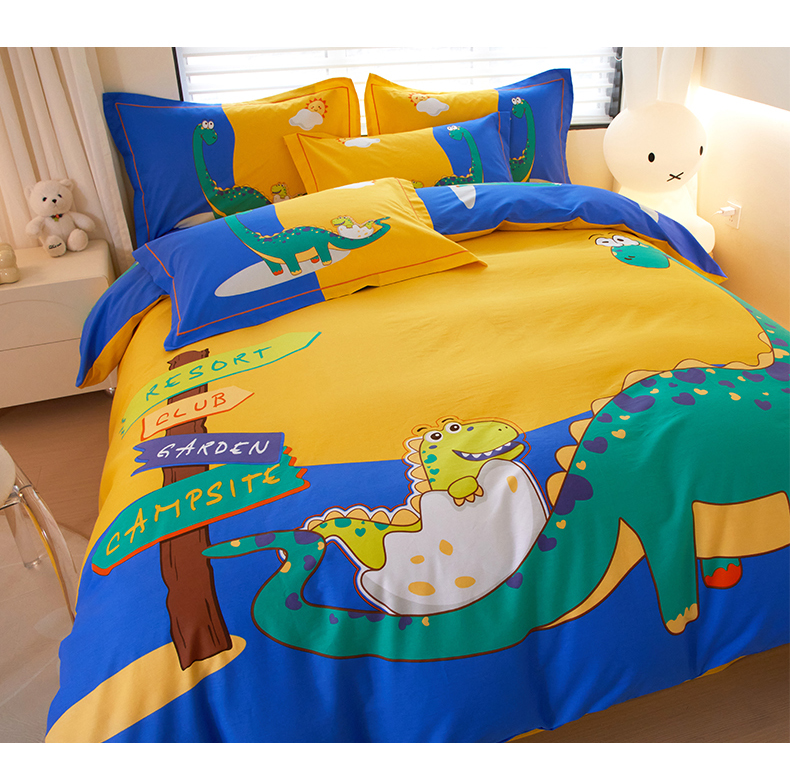 启航家居2025新款春夏直播爆款全棉大版印花四件套 童年乐趣黄