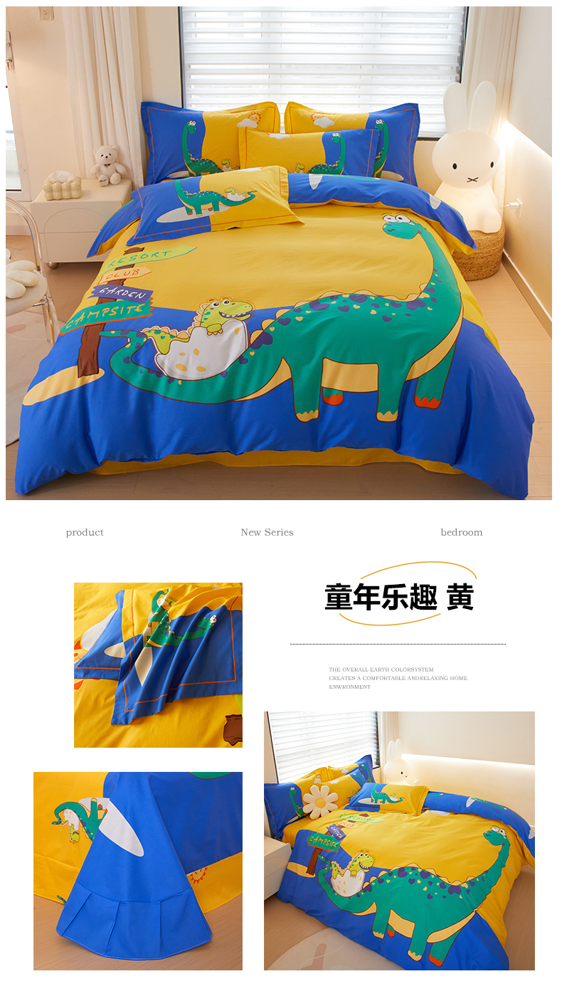 商品名称:启航家居2025新款春夏直播爆款全棉大版印花四件套 童年乐趣黄