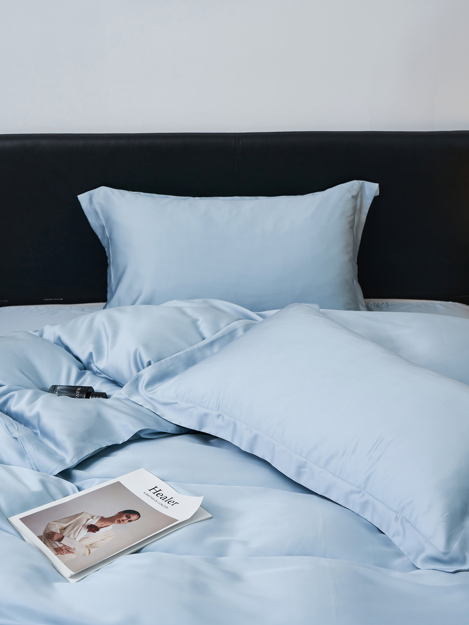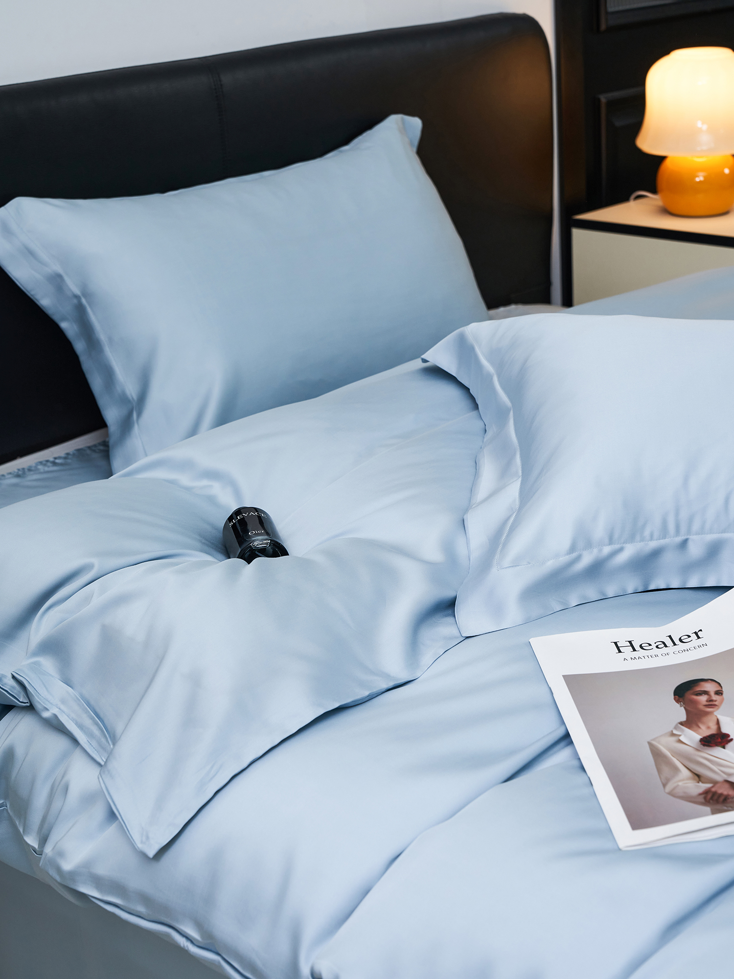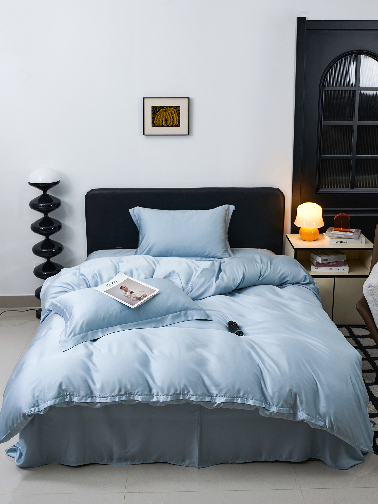 顾家家居 2025新款纯色兰精天丝四件套 天空蓝