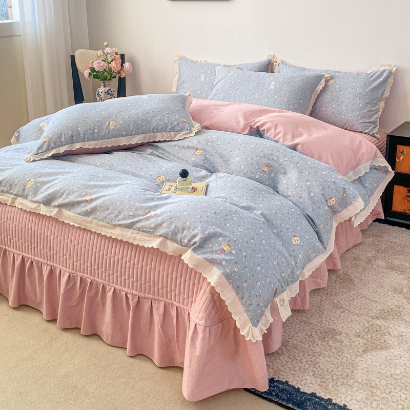 商品名称:梦可莱家居 2025新款全棉韩版蕾丝边床盖四件套 懂你
