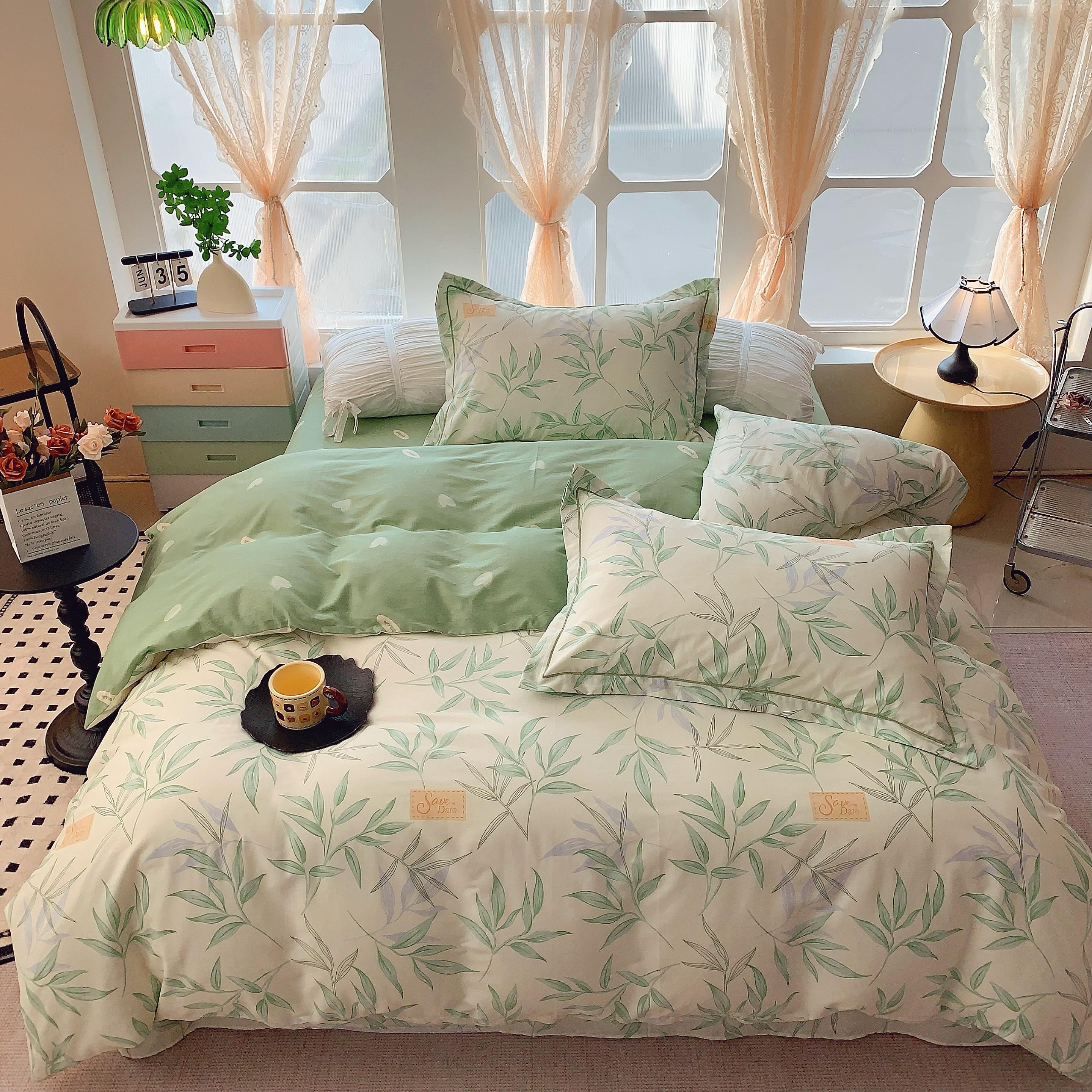 奈萝家纺 2025新款亲肤小清新全棉四件套 叶曲