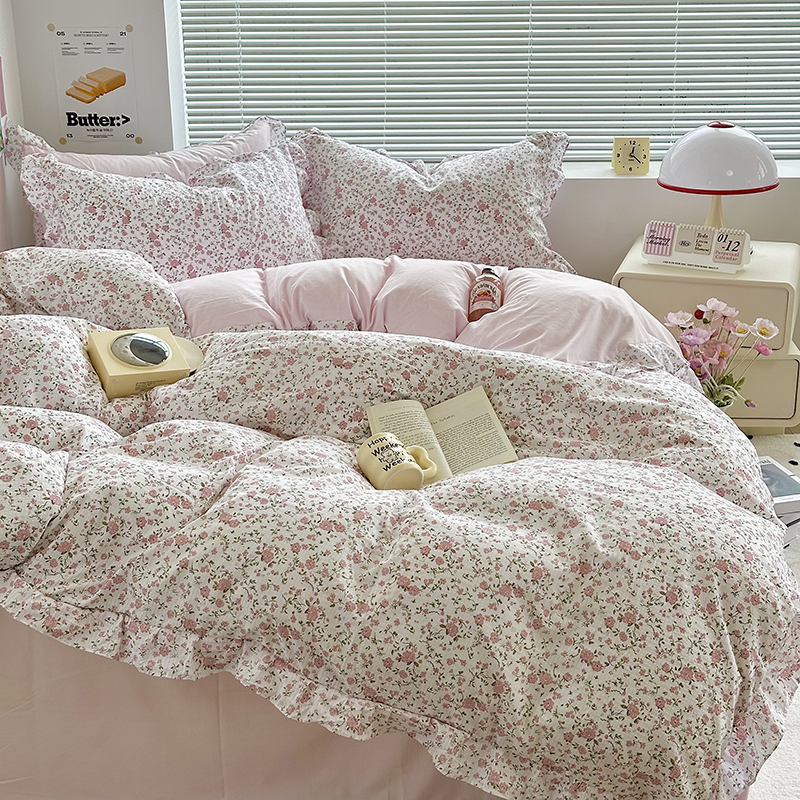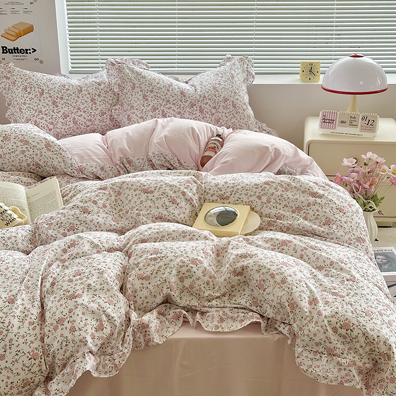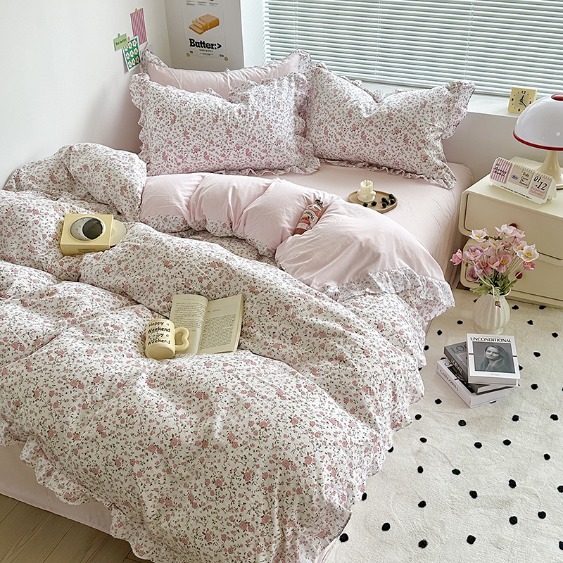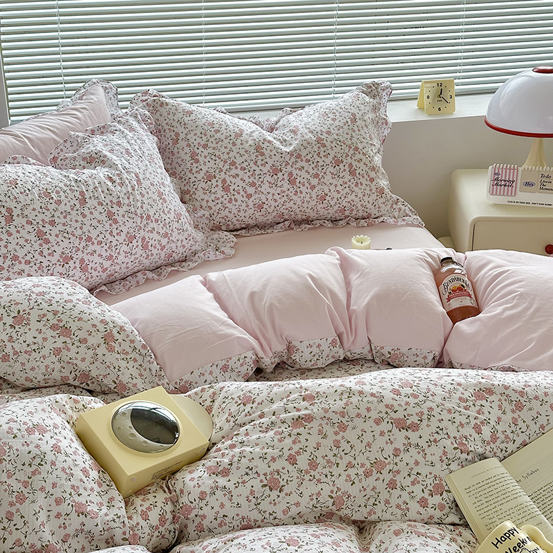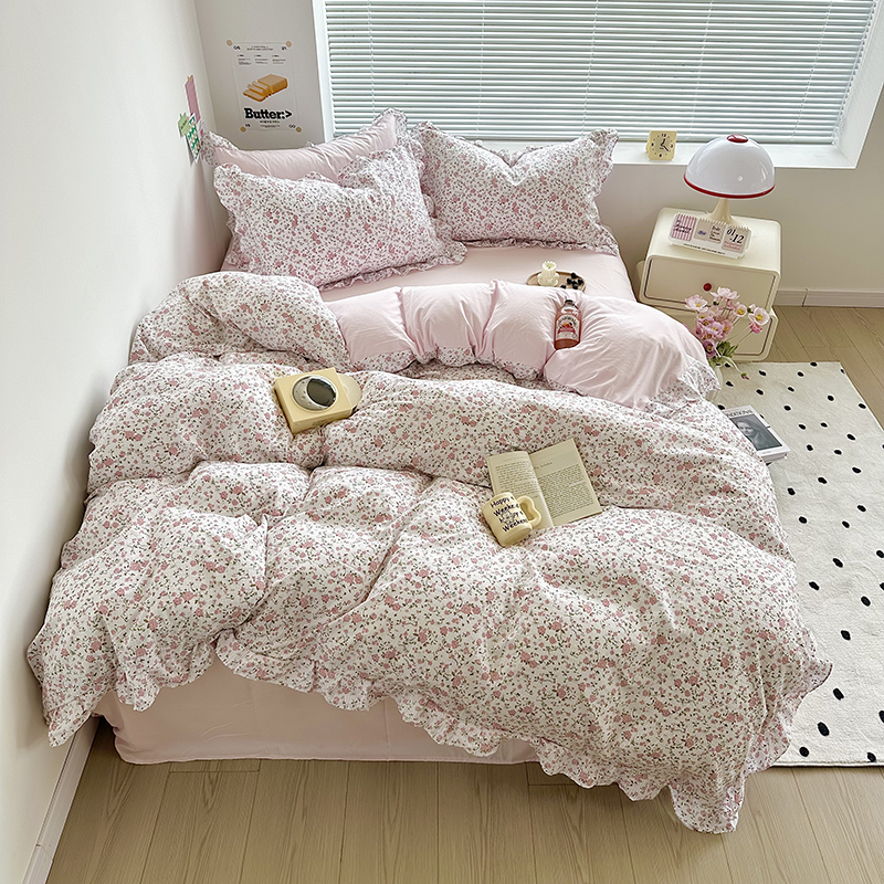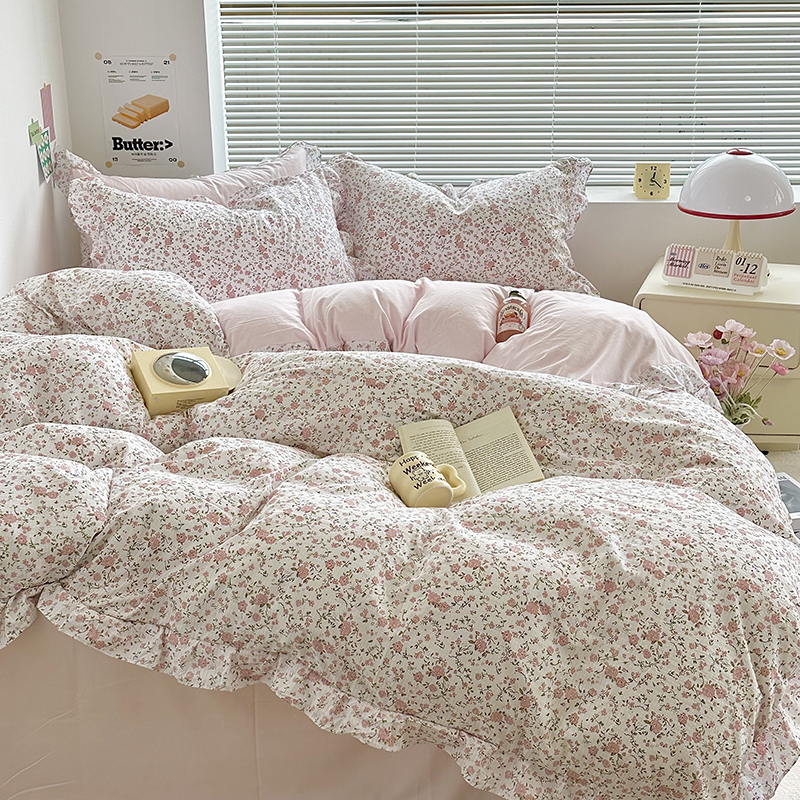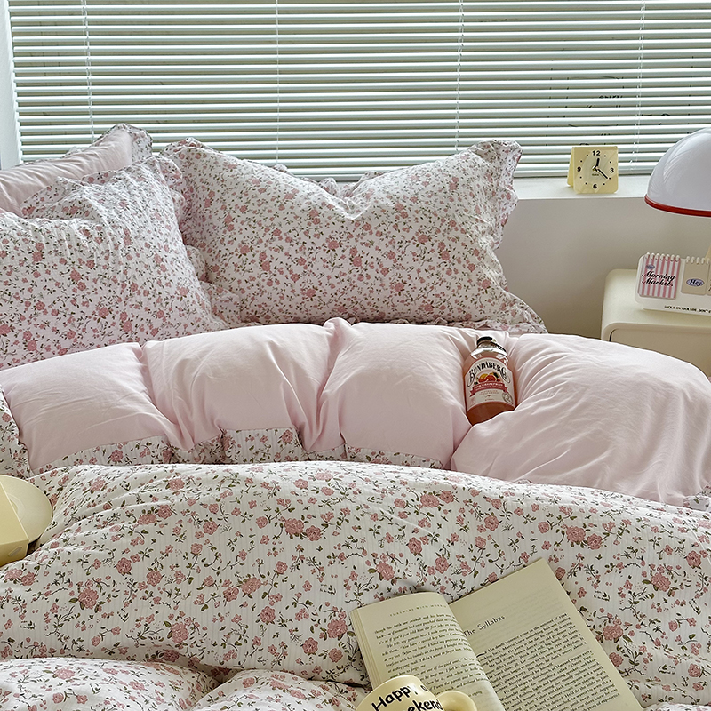 当前位置: 91家纺网 > 商品网购 > 床品套件 > 四件套 > 全棉普通四件套 > 希丞家居 2025新款花卉泡泡纱花边四件套 蔷薇