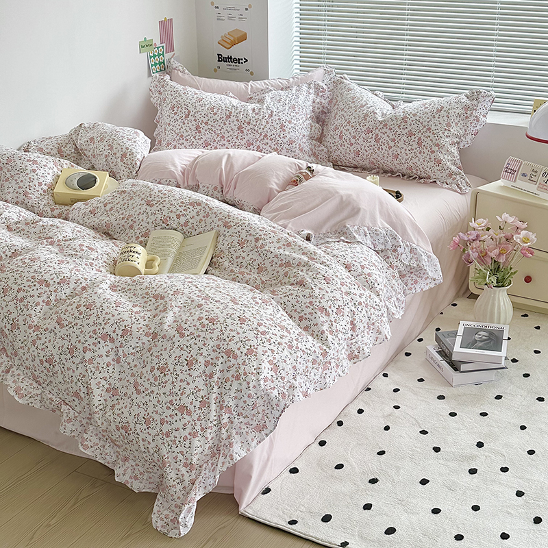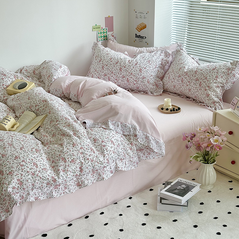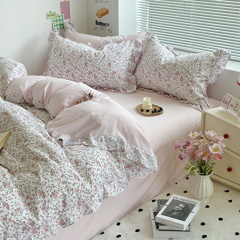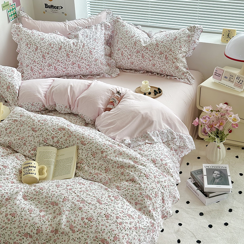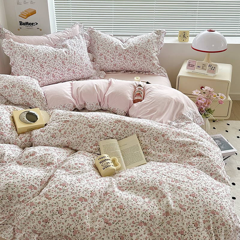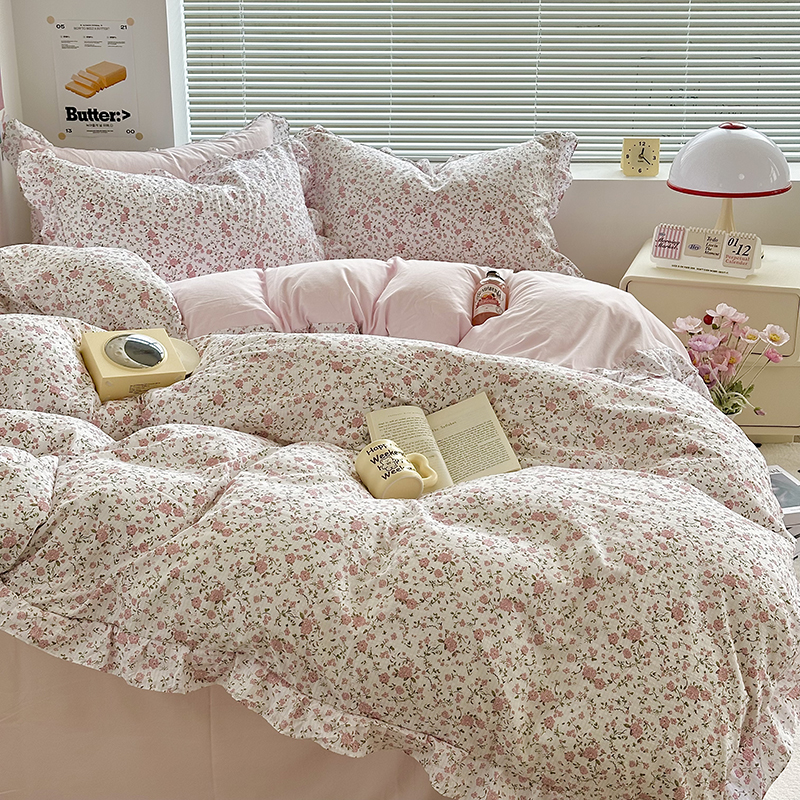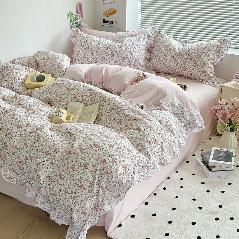 当前位置: 91家纺网 > 商品网购 > 床品套件 > 四件套 > 全棉普通四件套 > 希丞家居 2025新款花卉泡泡纱花边四件套 蔷薇