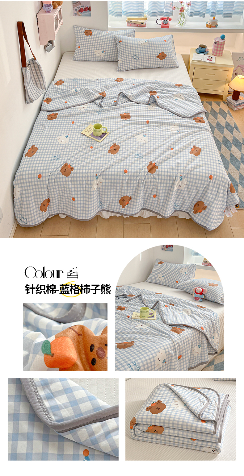 桃子家居 2025新款A类高品质牛奶针织棉软糯大豆夏被 针织棉-蓝格柿子熊