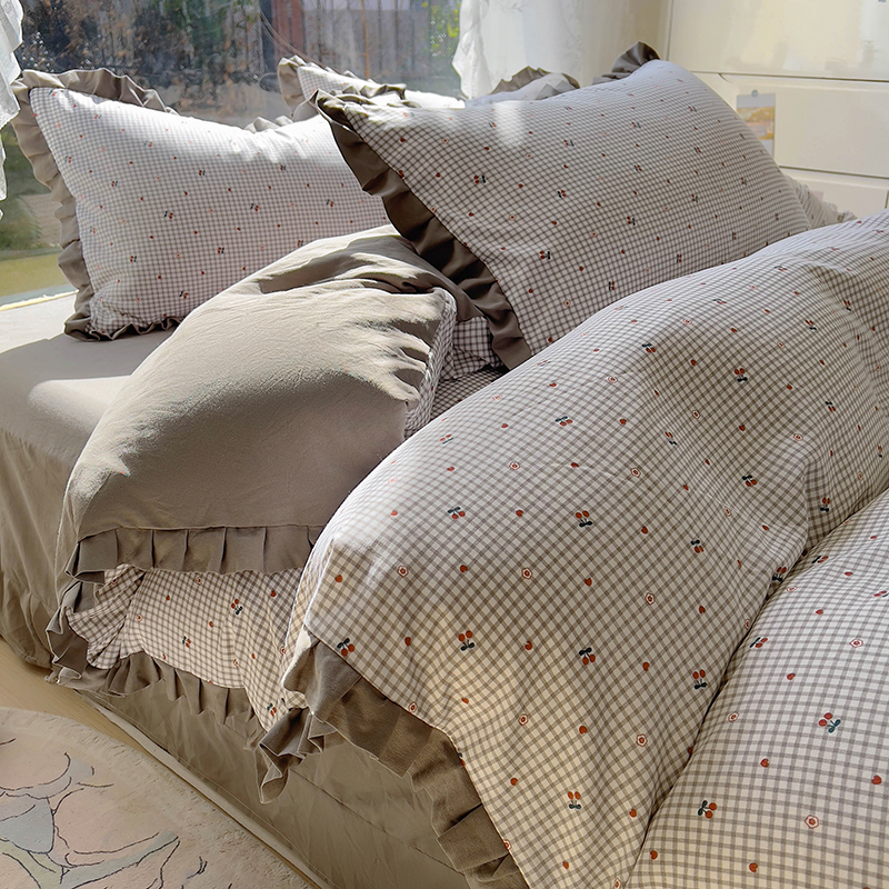 商品名称:欧尚 2025新款针织棉双层纱四件套 小樱桃