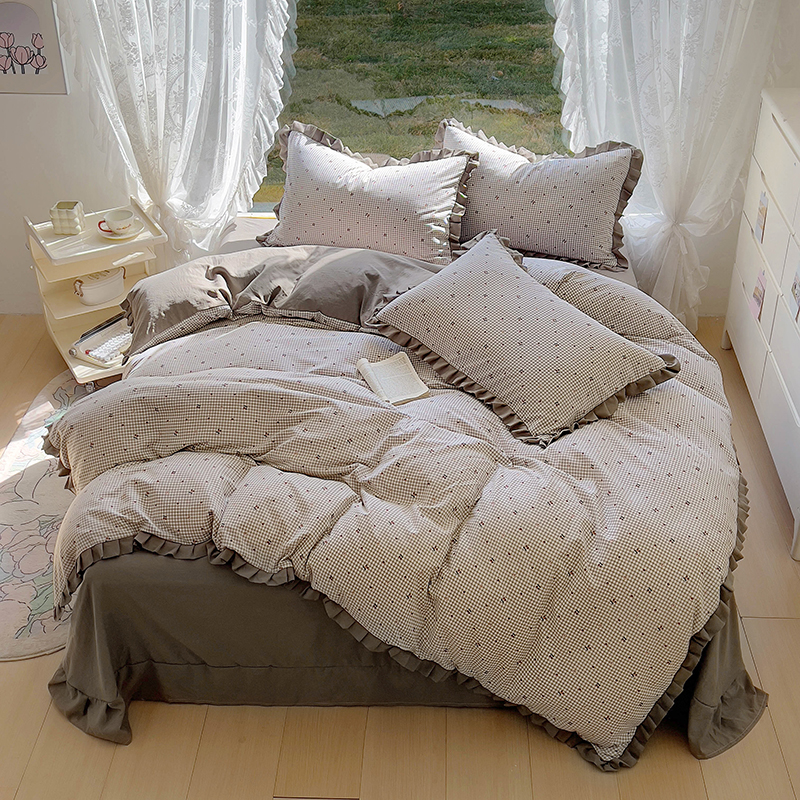 (总)欧尚 2025新款牛奶绒花边床盖四件套,粉点点,花小玉,咖色小心心,蓝点点,慕然,仙女粉,仙女紫
