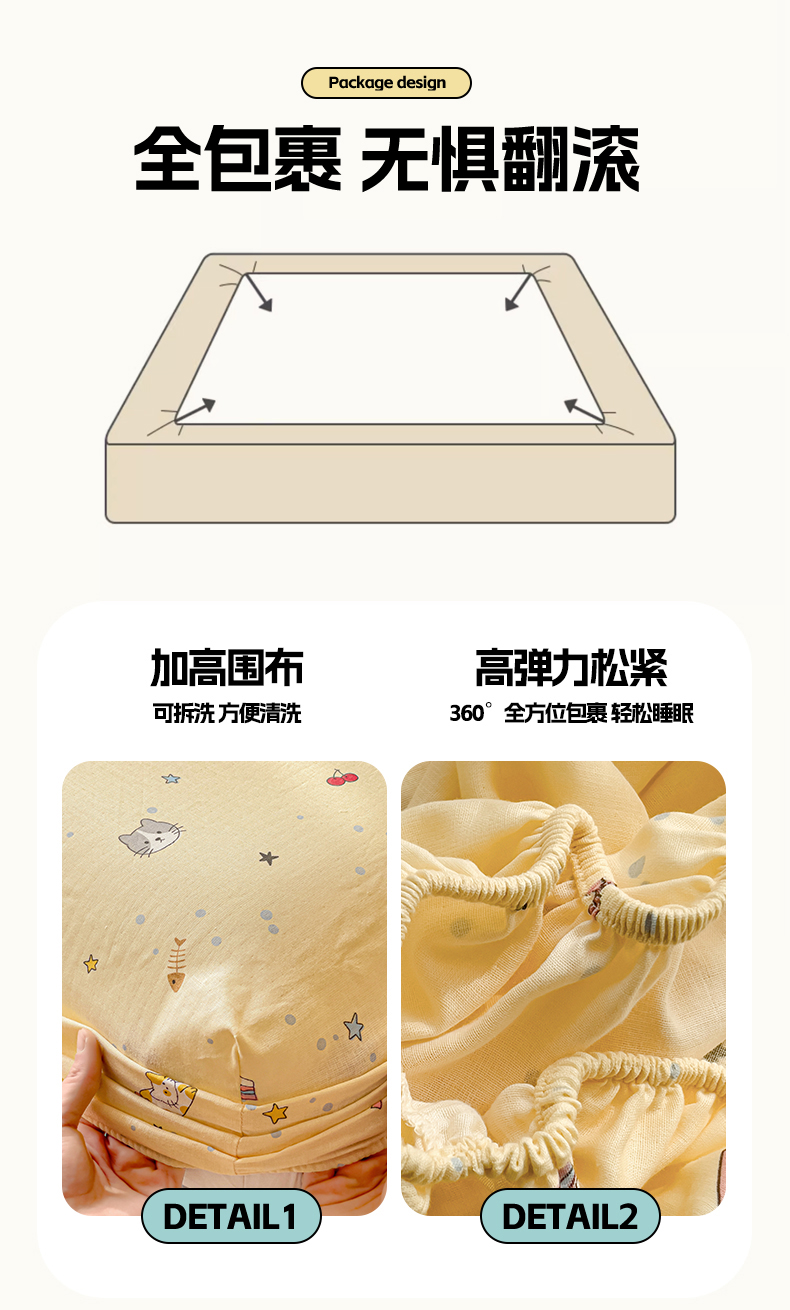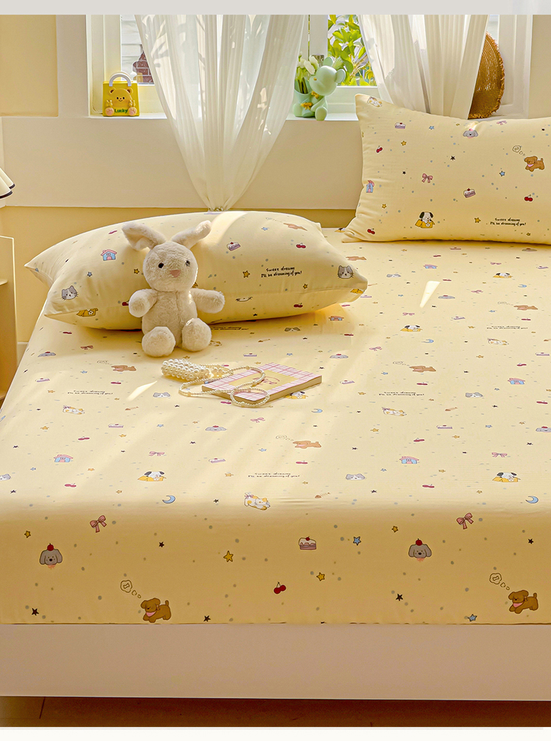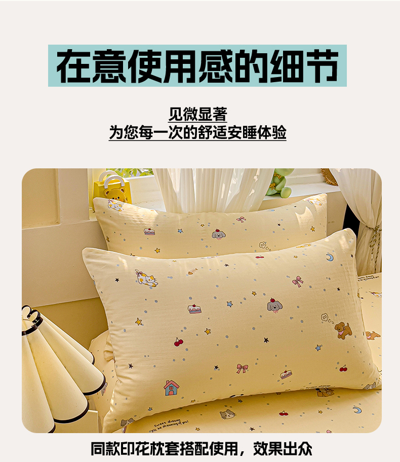 名兮家居 2025新款全棉双层纱床笠 双层纱-狗狗幻想
