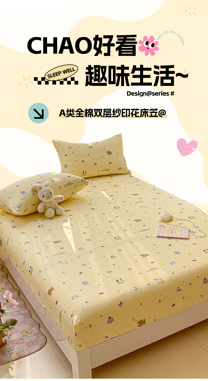 • 91家纺网 家纺一手货源 找家纺 名兮家居 2025新款全棉双层纱床笠 双层纱-狗狗幻想