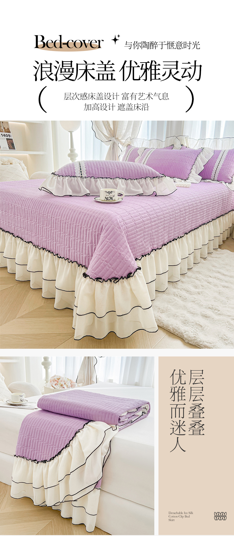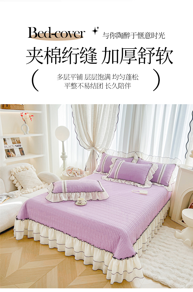 鑫棉坊 2025年新款全棉床盖三件套-花影倾梦 花影倾梦-优雅紫