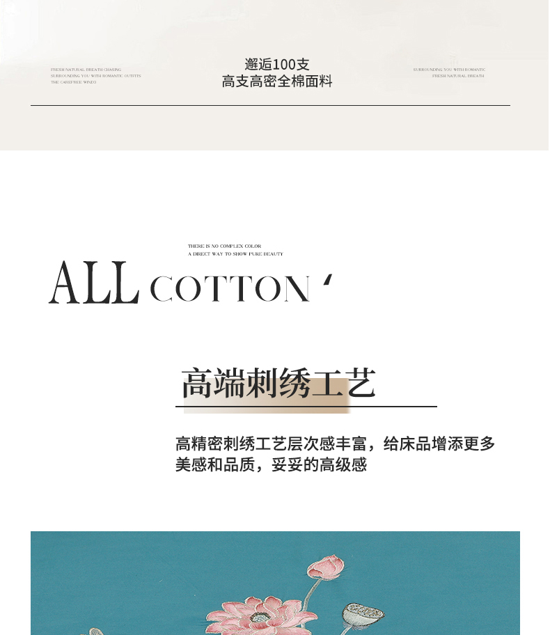 (总)浩情国际婚庆供货中心 2026新品-100支全棉长绒棉磨毛高端刺绣系列四件套,轻曼-豆沙,轻曼-湖兰,轻曼-米驼,轻曼-浅绿,轻曼-浅玉,轻曼-银灰,山水情-豆沙,山水情-粉玉,山水情-湖兰,山水情-米驼,山水情-浅灰,山水情-水兰