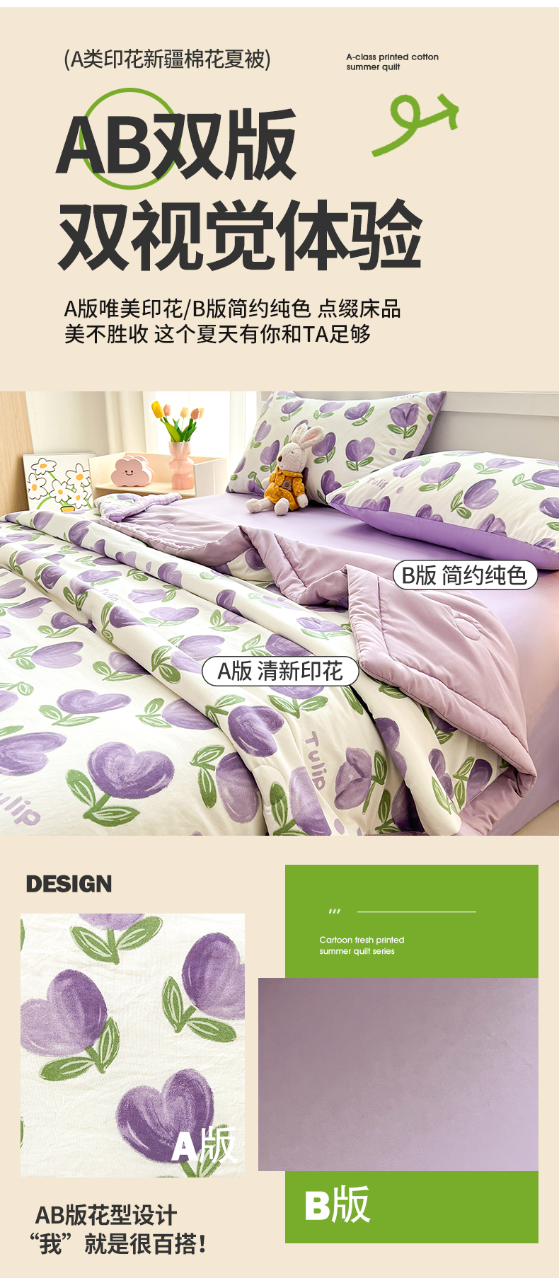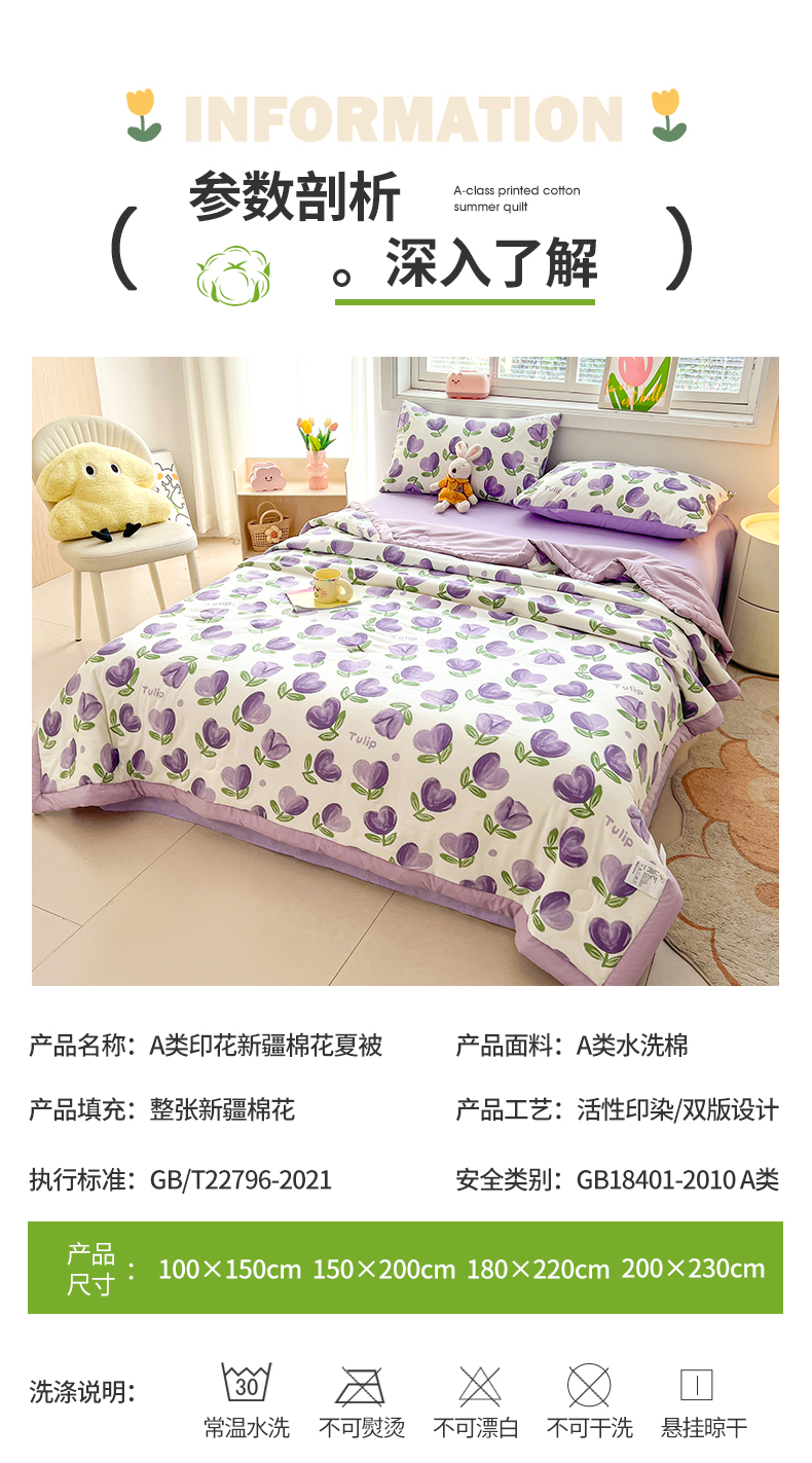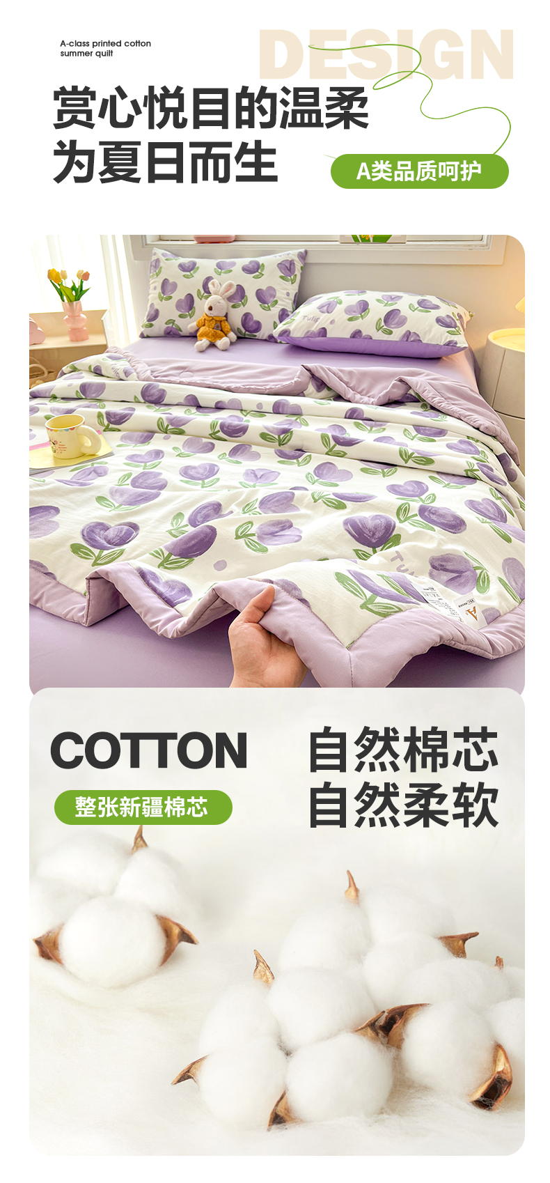 商品名称:晓时候 2025新款水洗棉夏被新疆棉花被印花夏凉被空调被薄被子 郁金香-紫