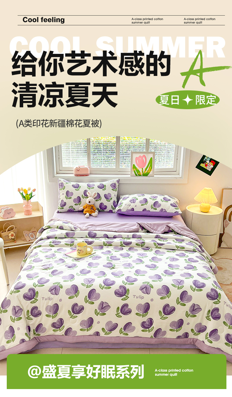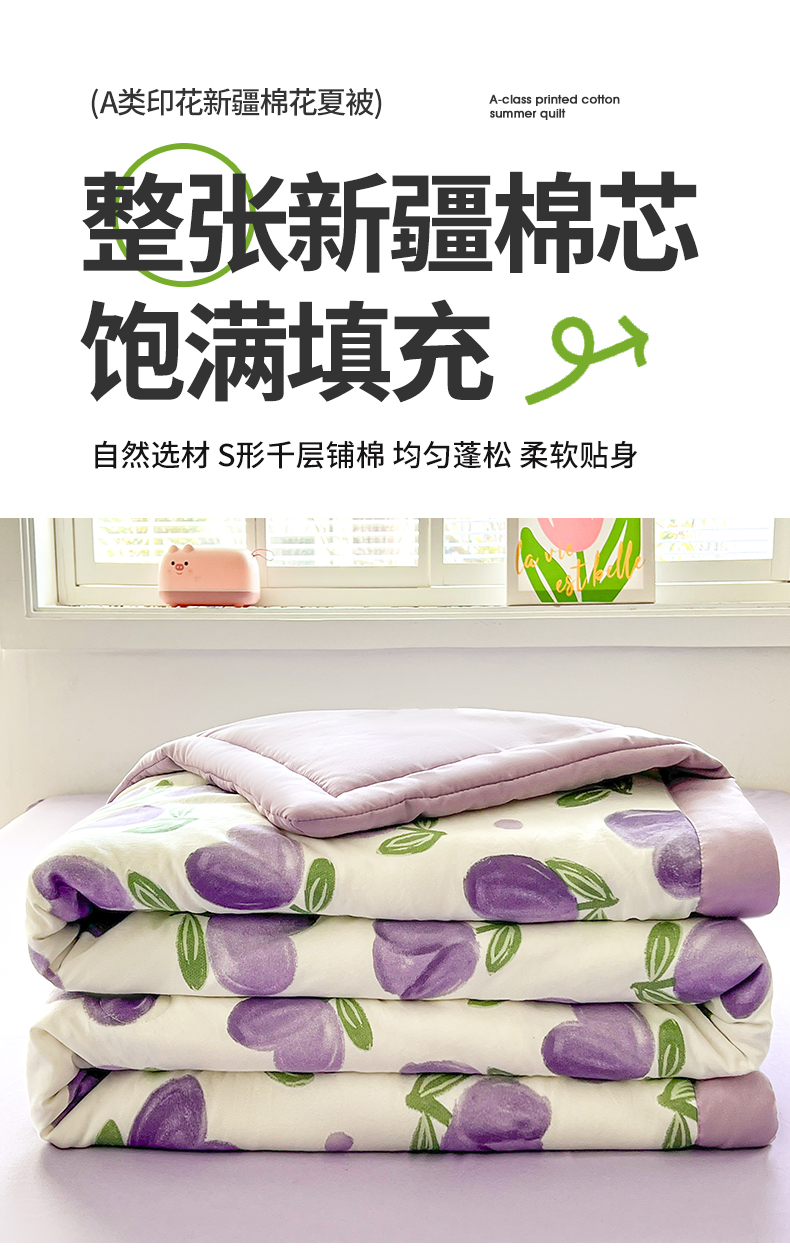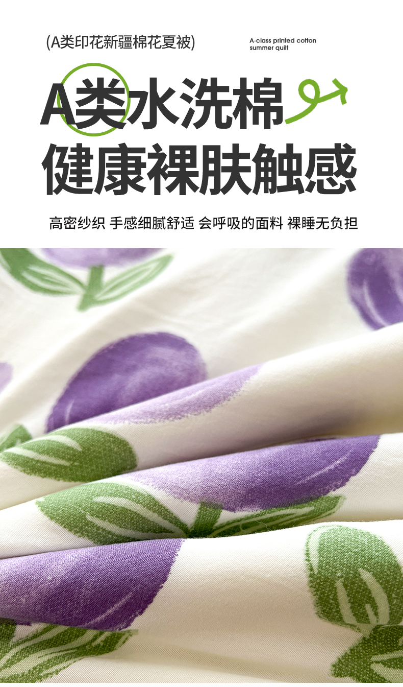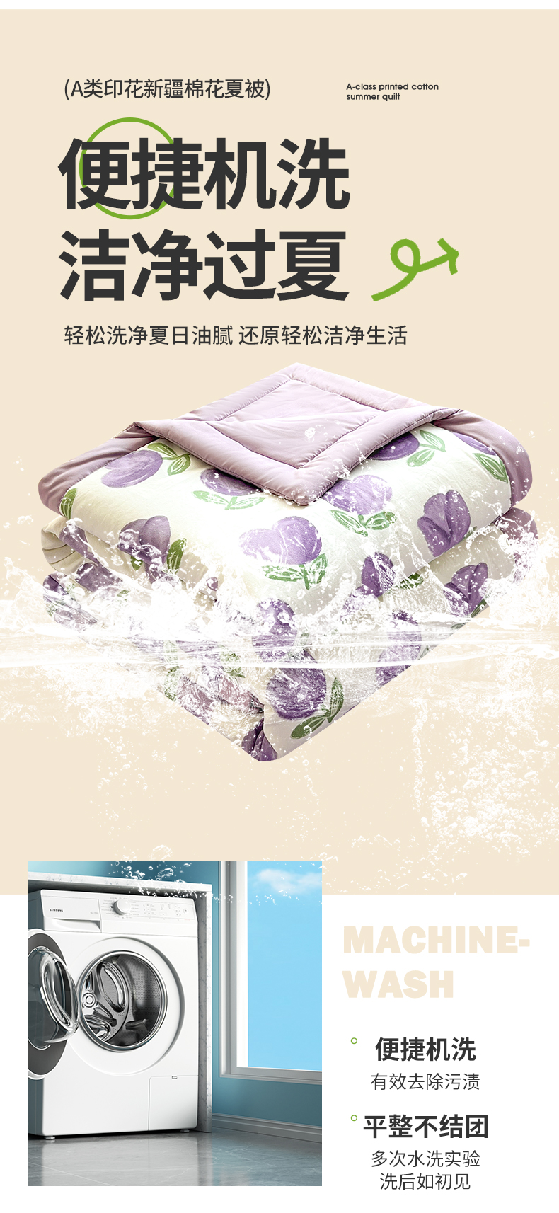 商品名称:晓时候 2025新款水洗棉夏被新疆棉花被印花夏凉被空调被薄被子 郁金香-紫