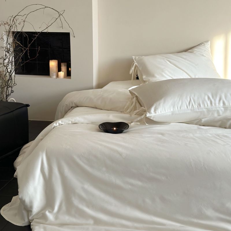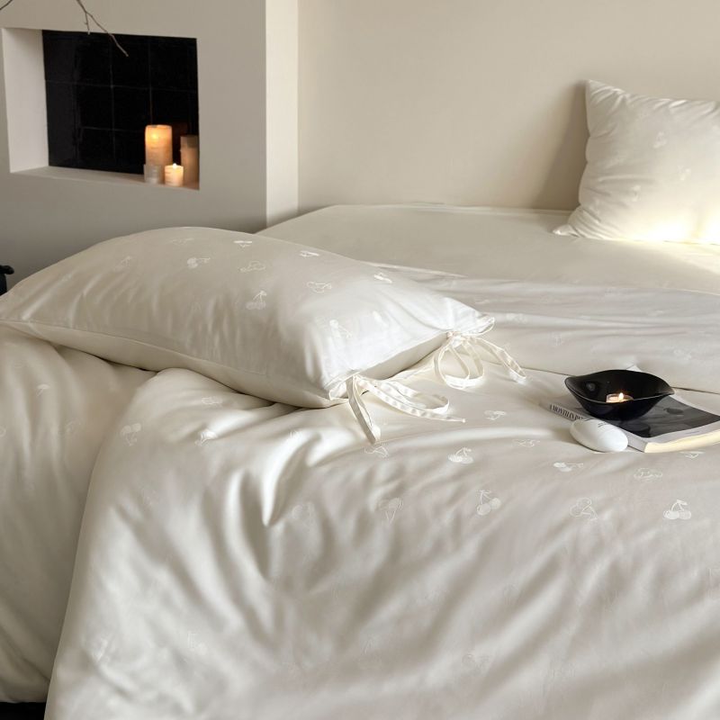 当前位置: 91家纺网 > 商品网购 > 床品套件 > 四件套 > 长绒棉四件套 > 鹿班家居 2025春夏款100S长绒棉精美提花系列-奶油樱桃-场景一【标准会员-20元】 奶油樱桃-白色-场景一