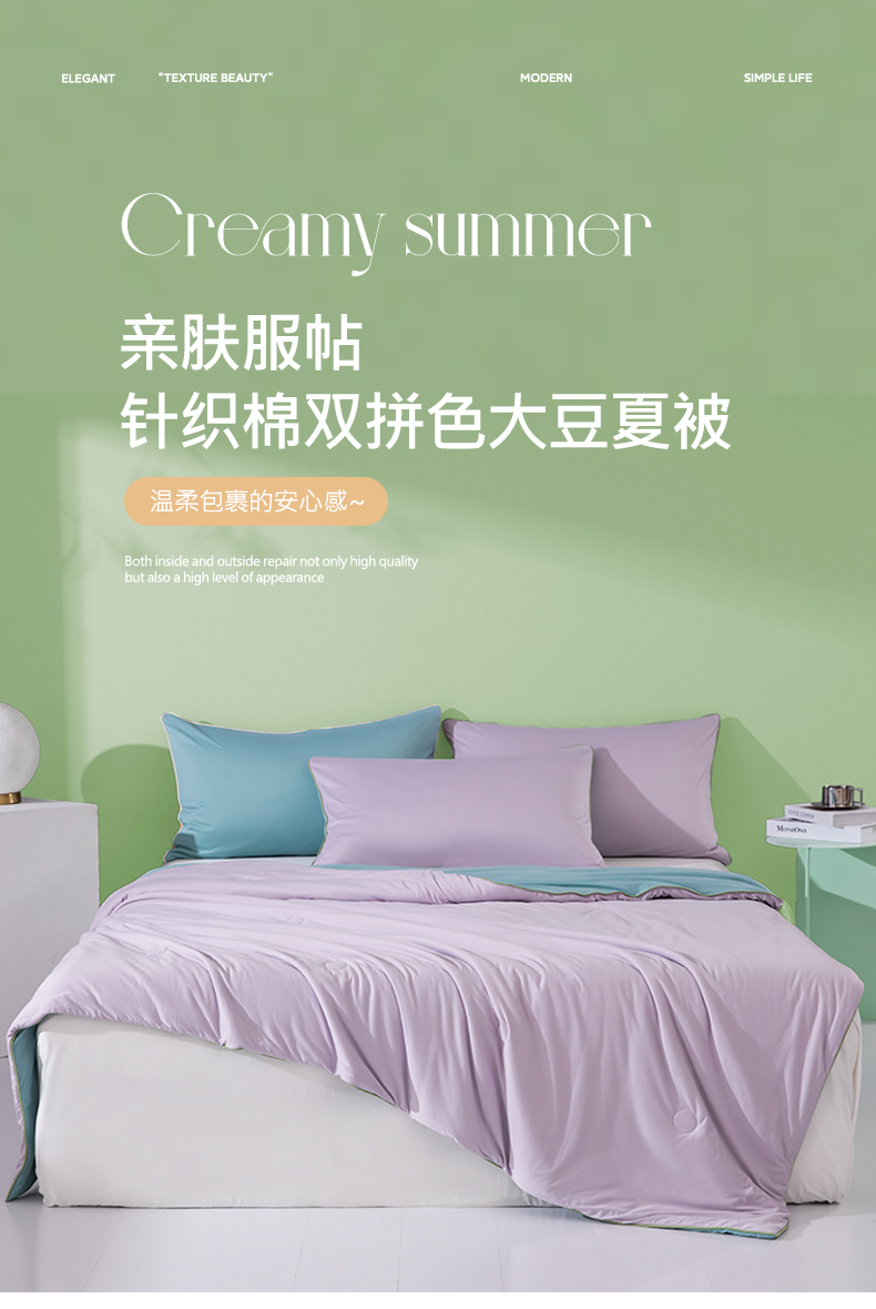 商品名称:吾诺 2025 针织棉夏被双拼色大豆夏被子被芯夏凉被空调被 烟紫-星兰