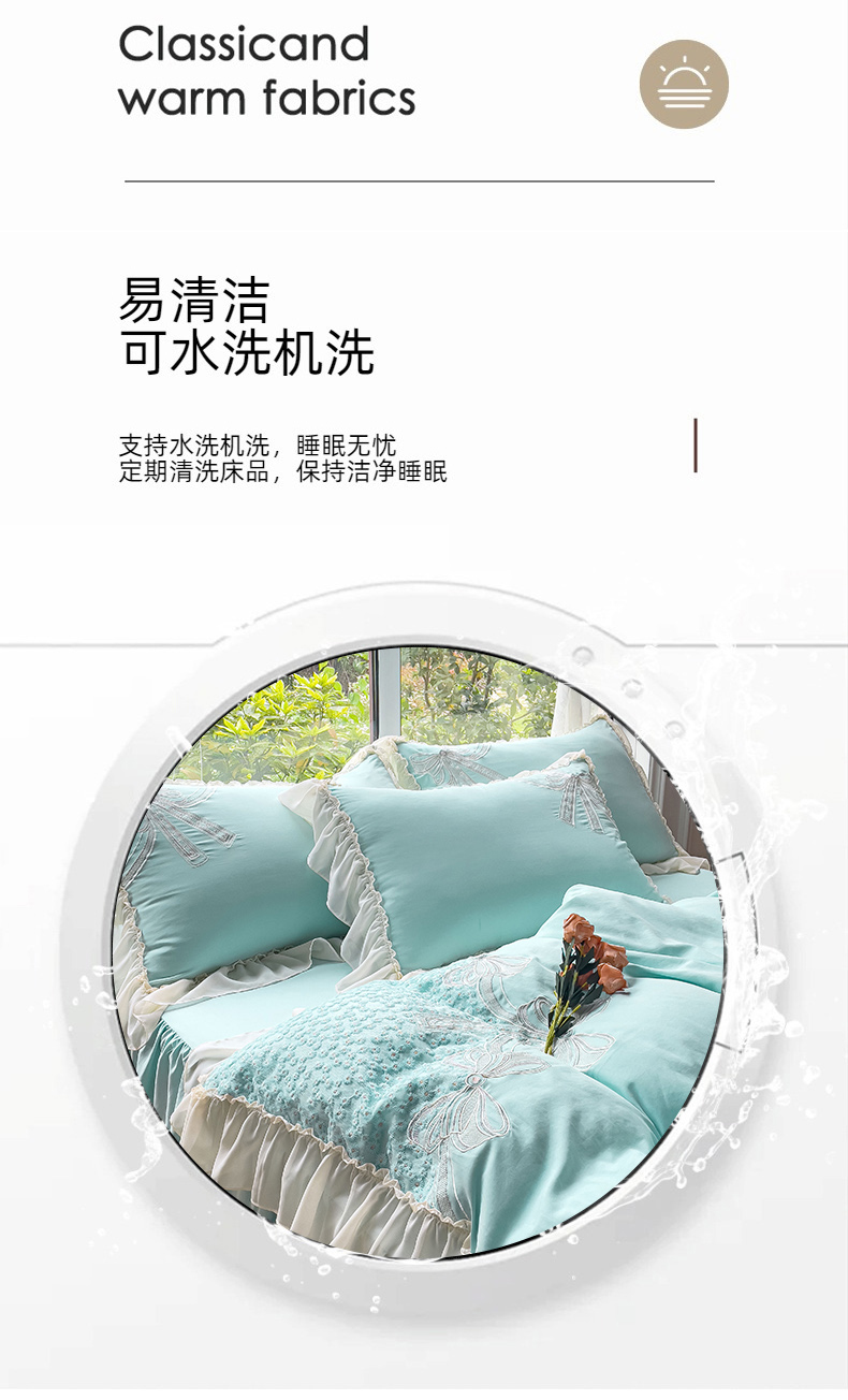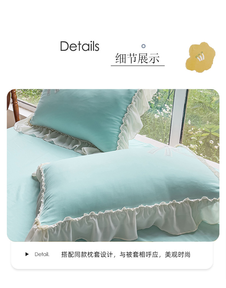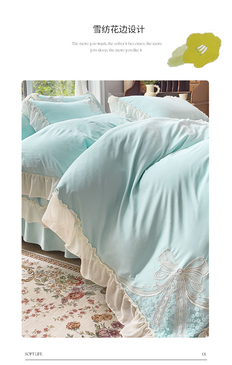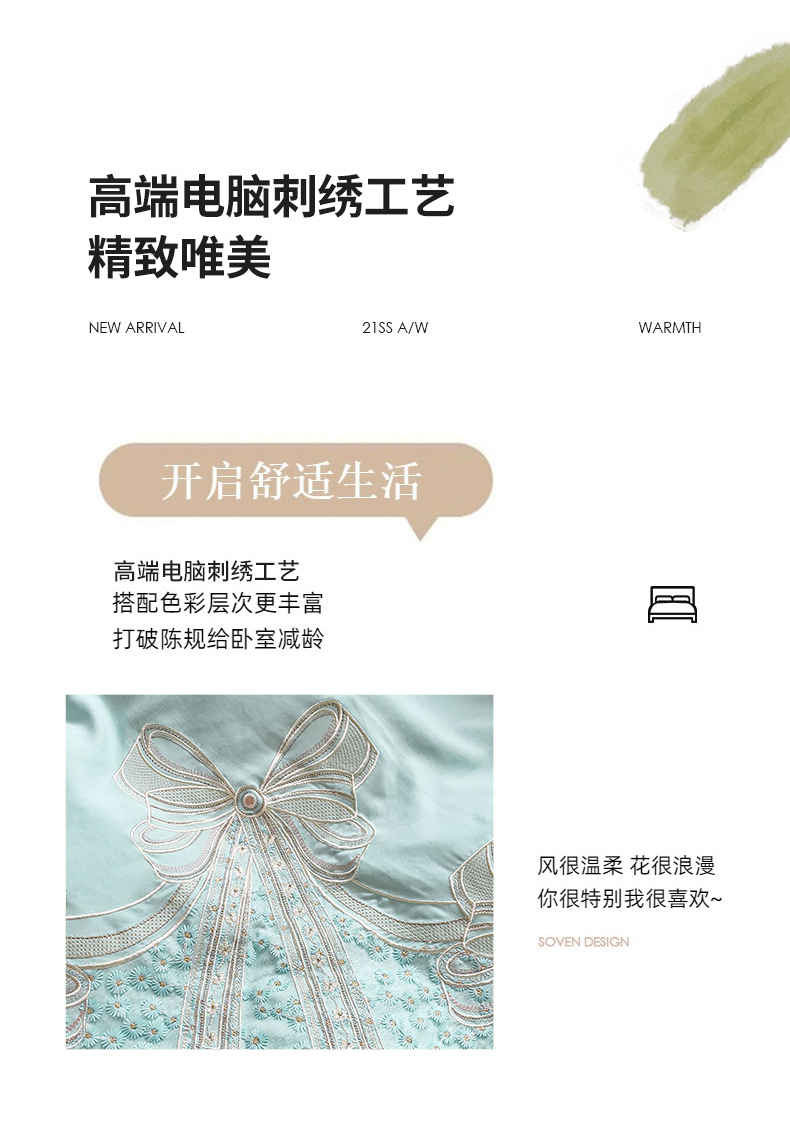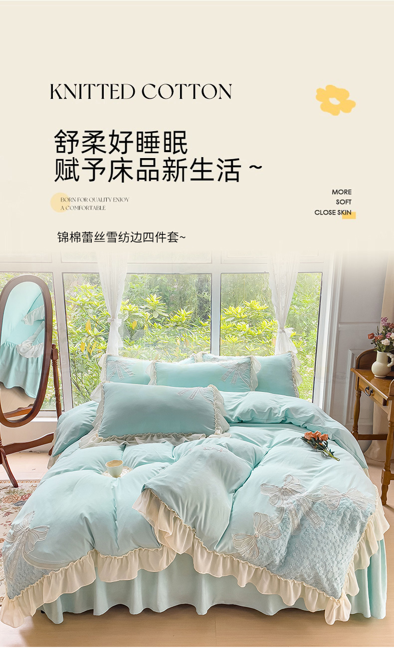 商品名称:睡美人 2025韩版全锦棉刺绣公主风蕾丝床裙款四件套-蝶恋花 蝶恋花-嫩芽绿