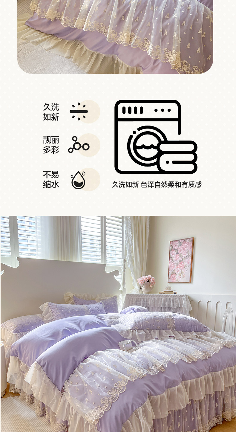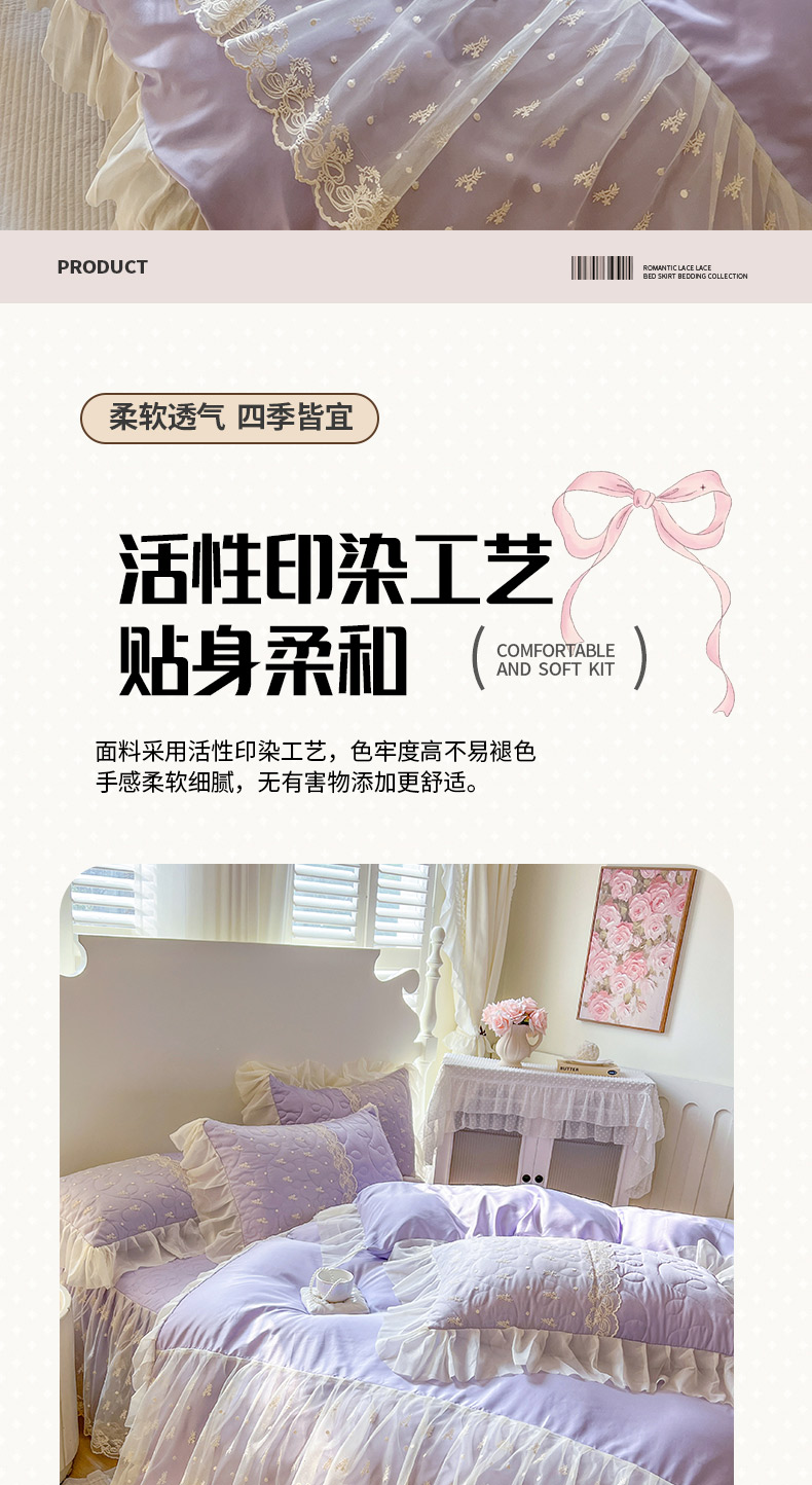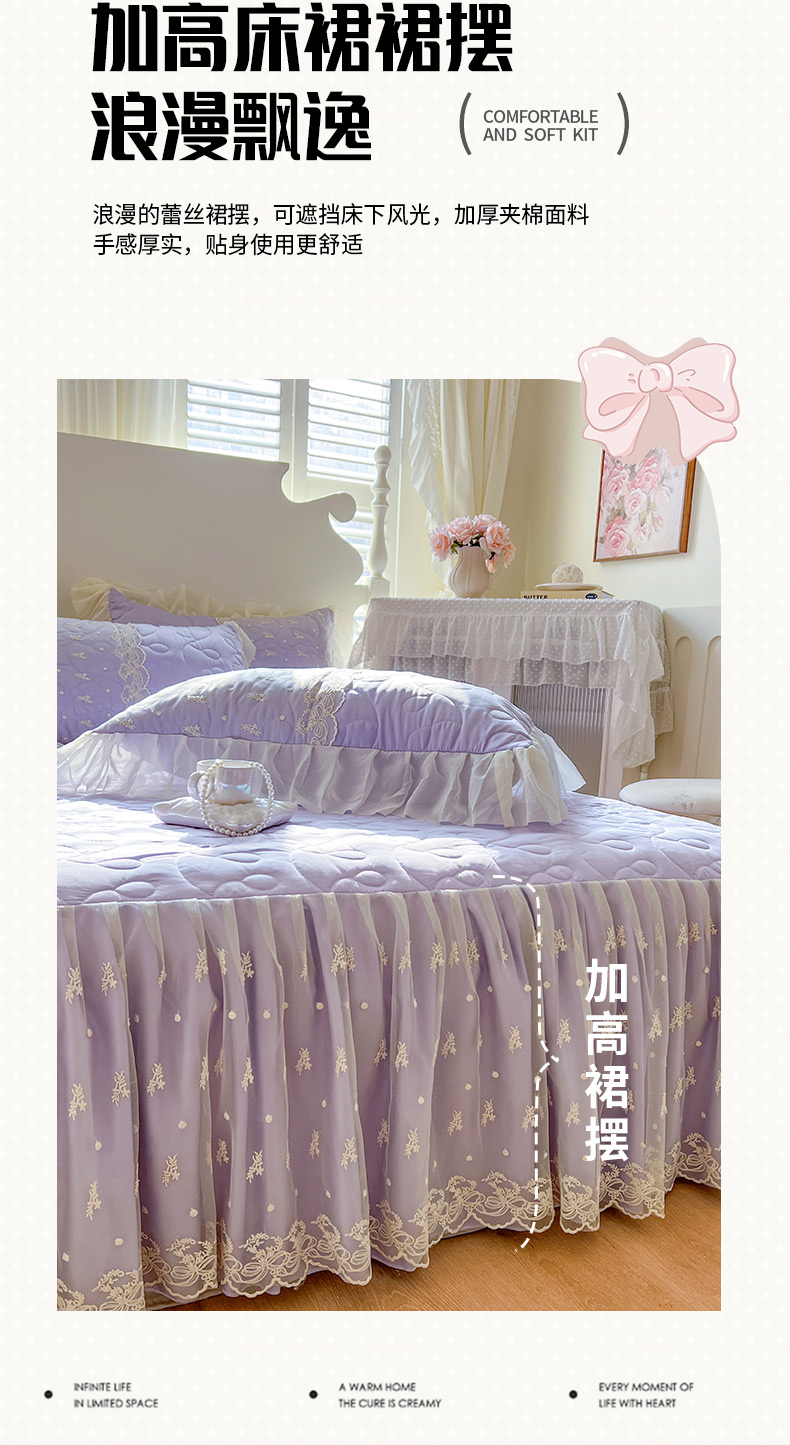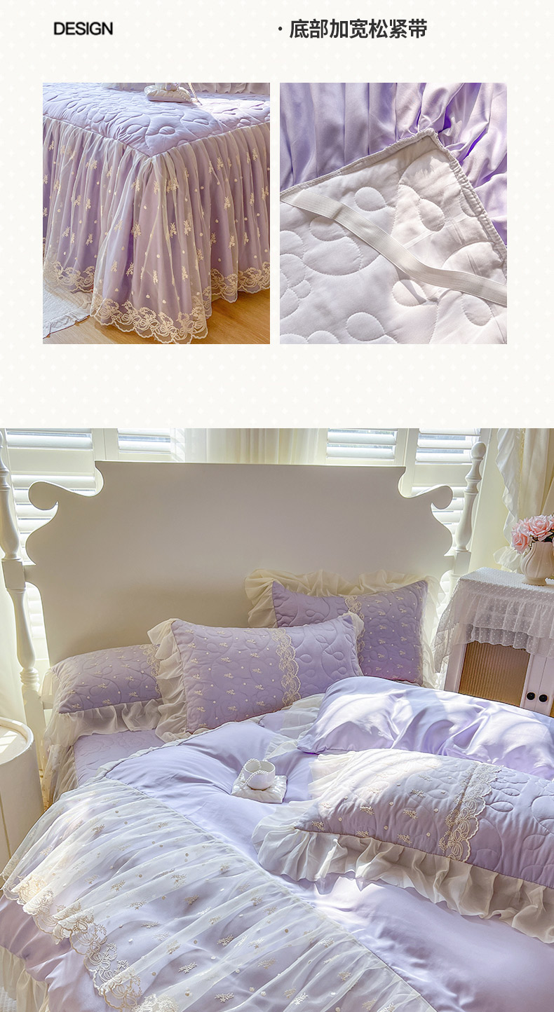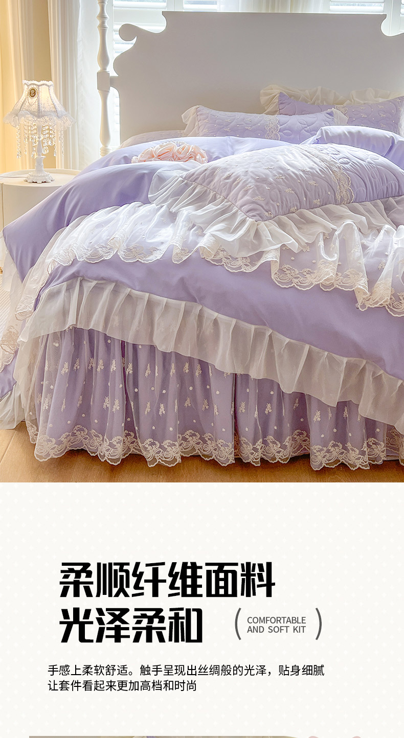 商品名称:恋尚 2025新款韩式蕾丝丝光棉夹棉床裙四件套 蜜芙-香芋紫