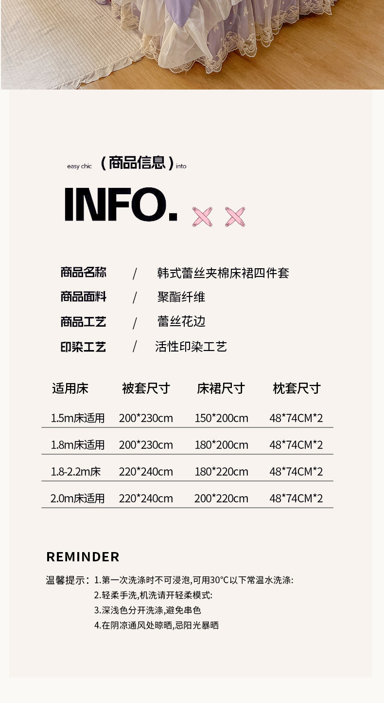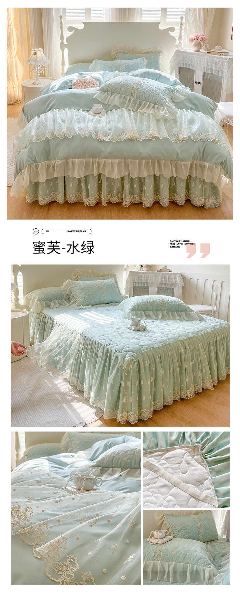 (总)恋尚 2025新款韩式蕾丝丝光棉夹棉床裙四件套,蜜芙-浅蓝,蜜芙-米黄,蜜芙-蜜桃粉,蜜芙-浅白,蜜芙-水绿,蜜芙-香芋紫