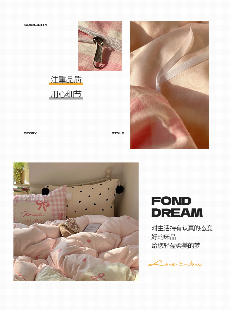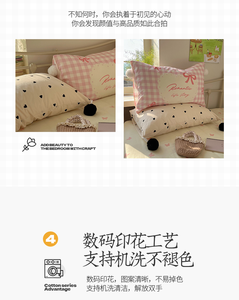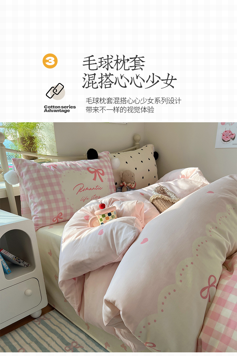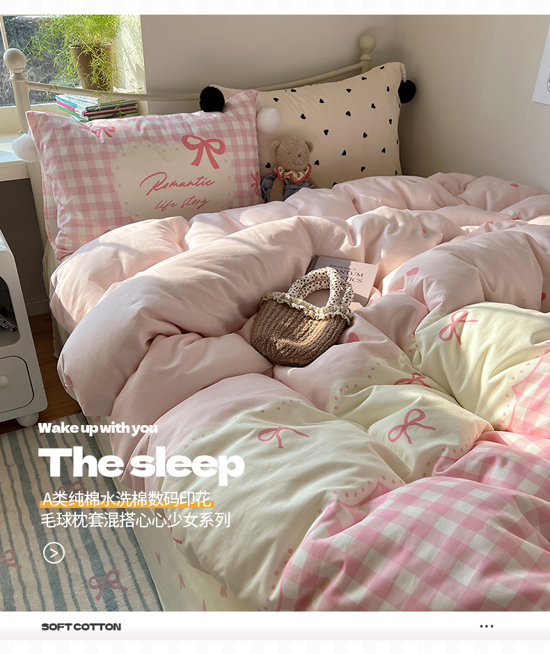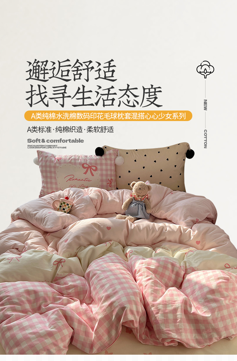 当前位置: 91家纺网 > 商品网购 > 床品套件 > 四件套 > 全棉普通四件套 > 2025新款A类水洗棉数码印花毛球枕套混搭心心少女纯棉水洗棉系列四件套 棉数码毛球-心心蝴蝶结粉