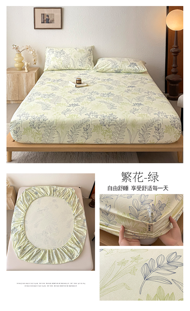 • 91家纺网 家纺一手货源 找家纺 九亭家纺 2025新款A类全棉老粗布单床笠 繁花-绿