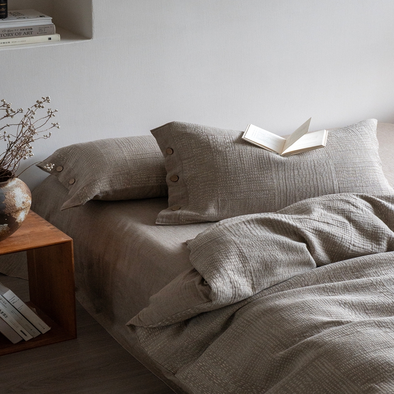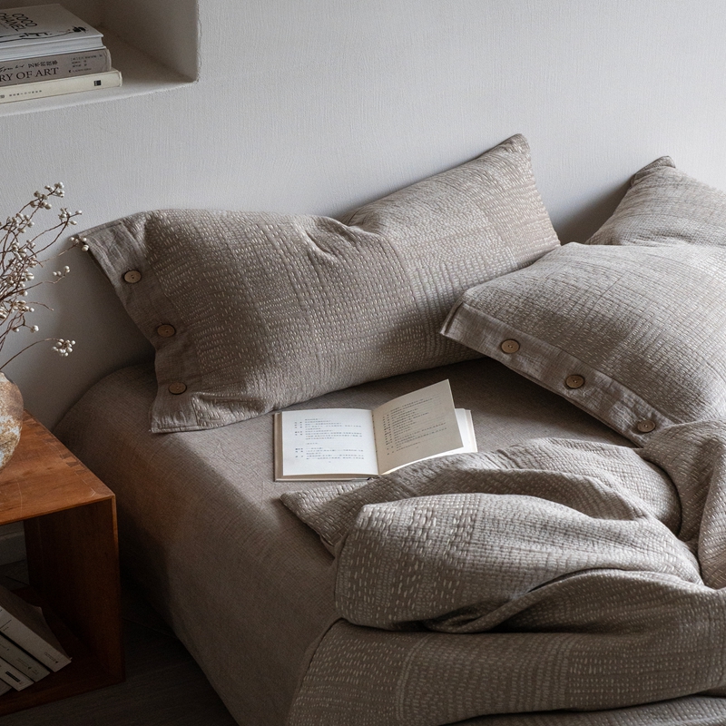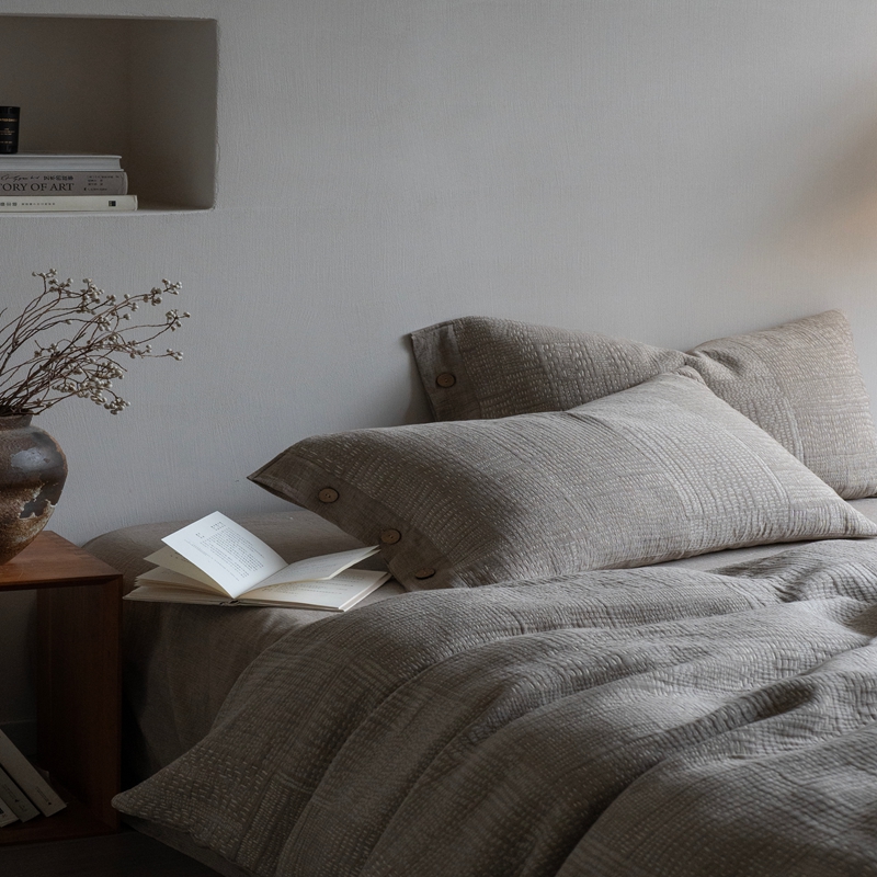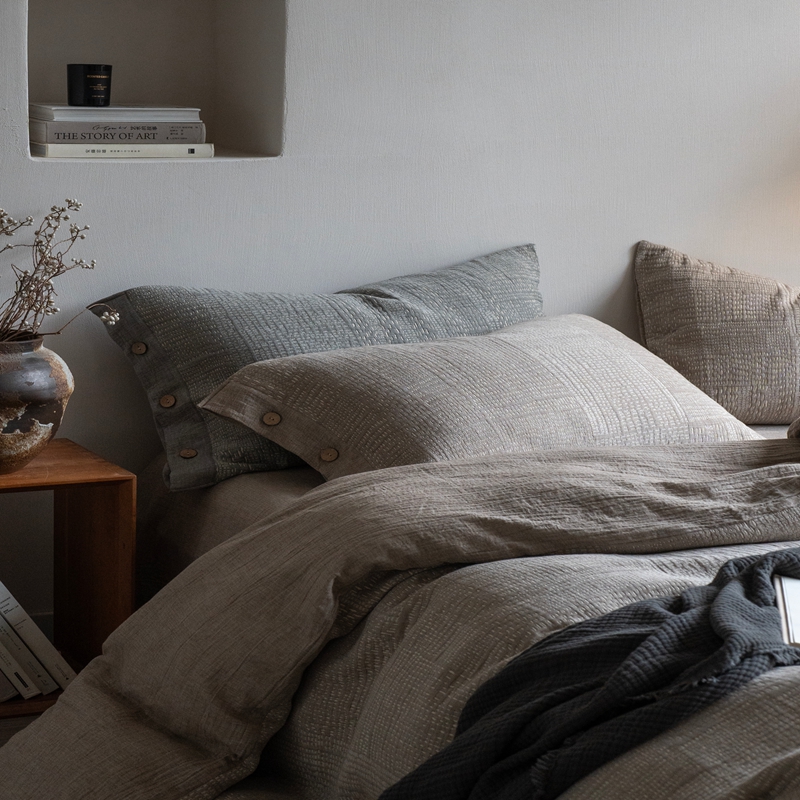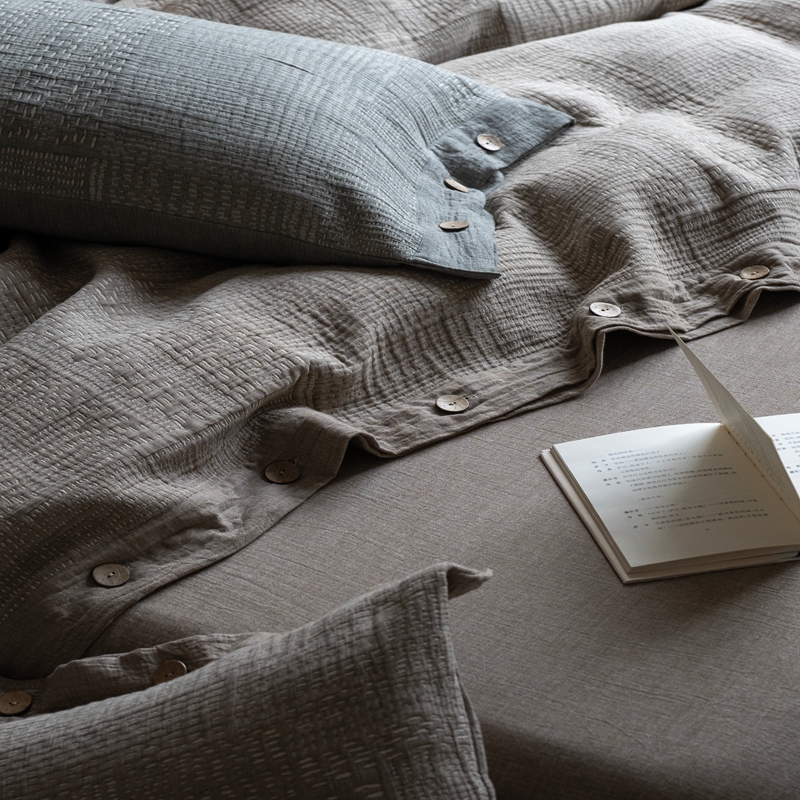 (总)璞素2025新款全棉色织三层纱床盖三件套-摩卡,摩卡灰,摩卡咖