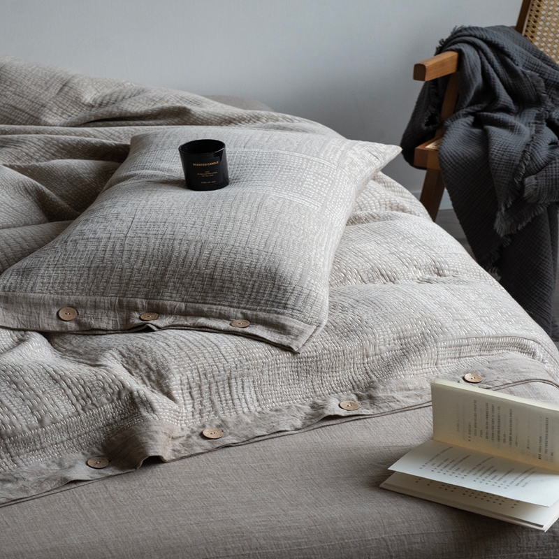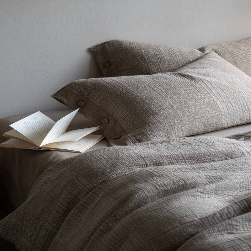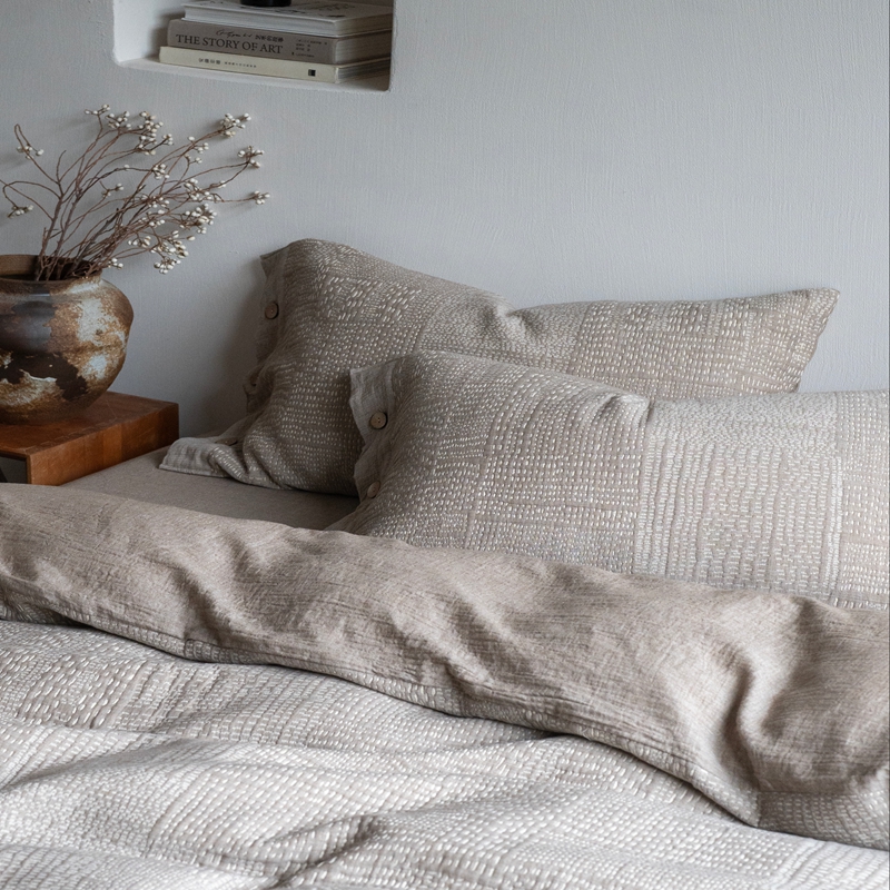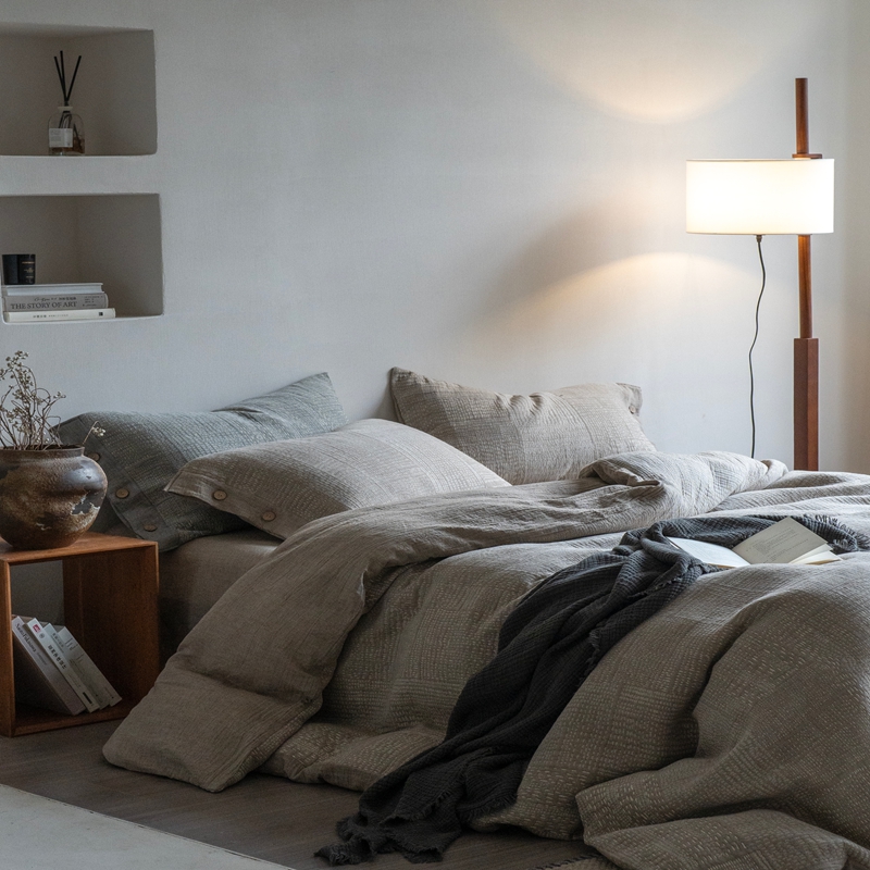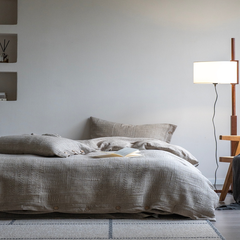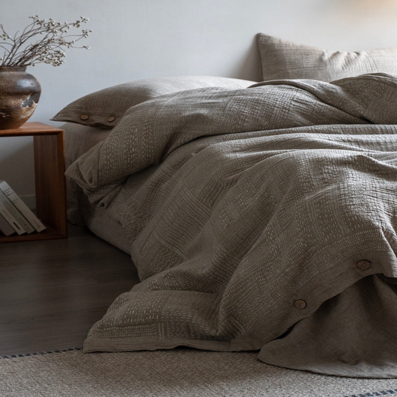 (总)璞素2025新款全棉色织三层纱床盖三件套-摩卡,摩卡灰,摩卡咖