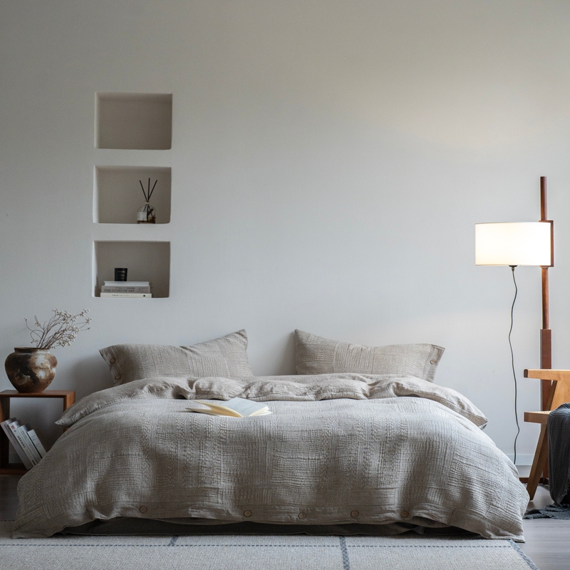 (总)璞素家居 2025新款棉麻绑带款四件套,白色